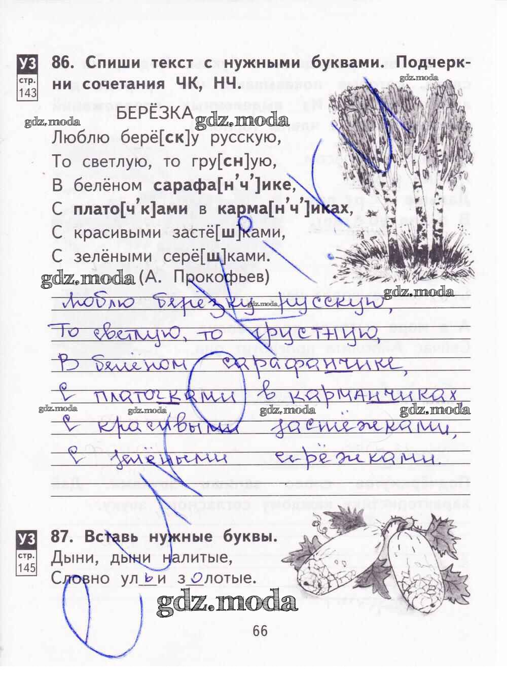 ГДЗ решение к заданию № 66 Русский язык 2 класс Тетрадь для самостоятельной работы Байкова Т.А. Академкнига 2017 Часть 1, Часть 2 ФГОС бесплатно на гдз.мода!