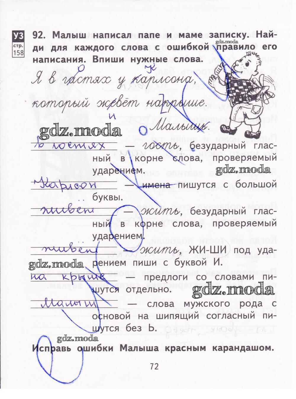 ГДЗ решение к заданию № 72 Русский язык 2 класс Тетрадь для самостоятельной работы Байкова Т.А. Академкнига 2017 Часть 1, Часть 2 ФГОС бесплатно на гдз.мода!