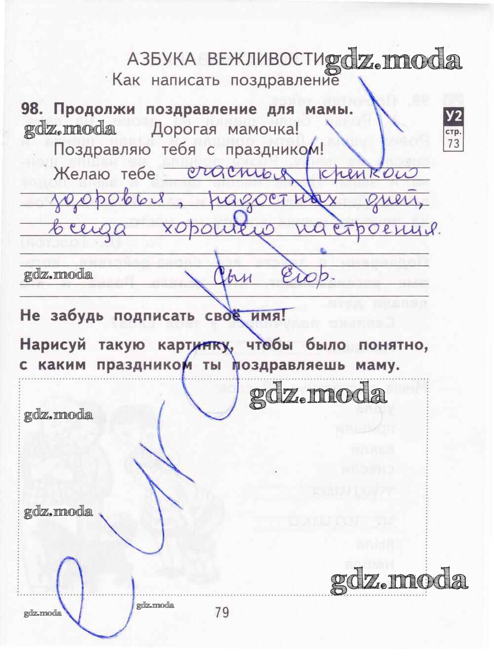 ГДЗ решение к заданию № 79 Русский язык 2 класс Тетрадь для самостоятельной работы Байкова Т.А. Академкнига 2017 Часть 1, Часть 2 ФГОС бесплатно на гдз.мода!