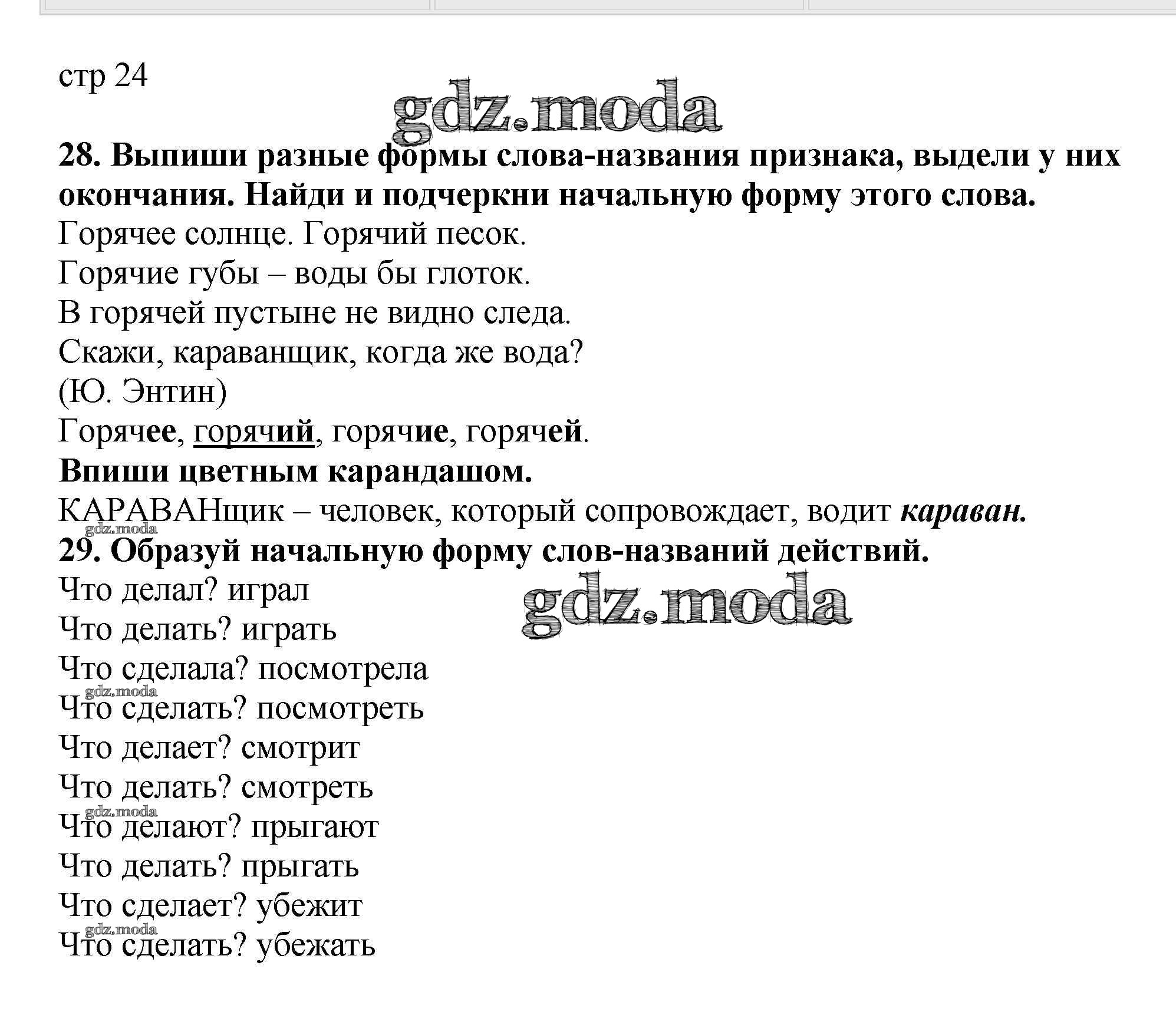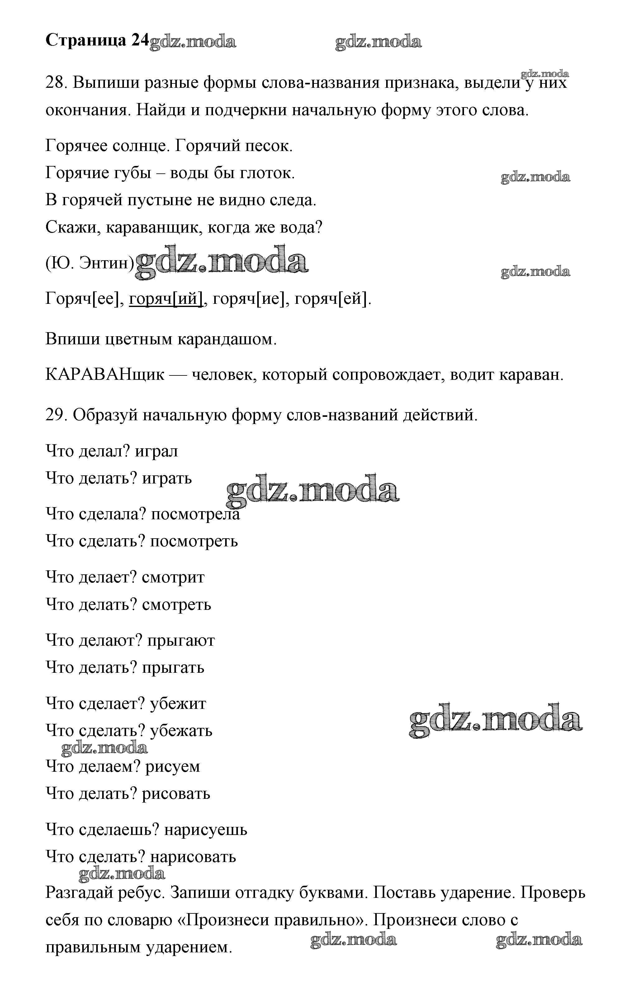 ОТВЕТ на задание № 24 Тетрадь для самостоятельной работы по Русскому языку 2 класс Байкова