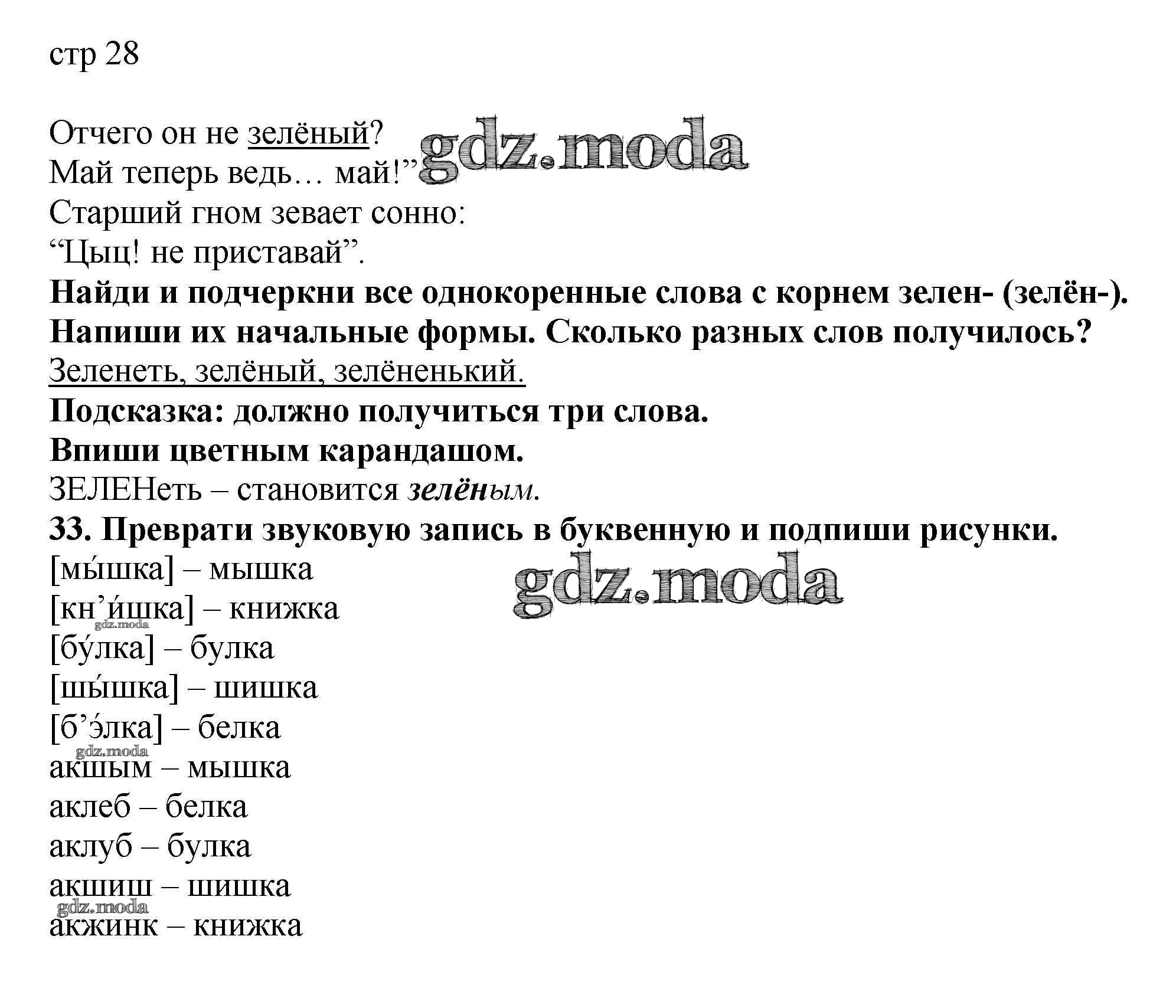 ОТВЕТ на задание № 28 Тетрадь для самостоятельной работы по Русскому языку 2 класс Байкова
