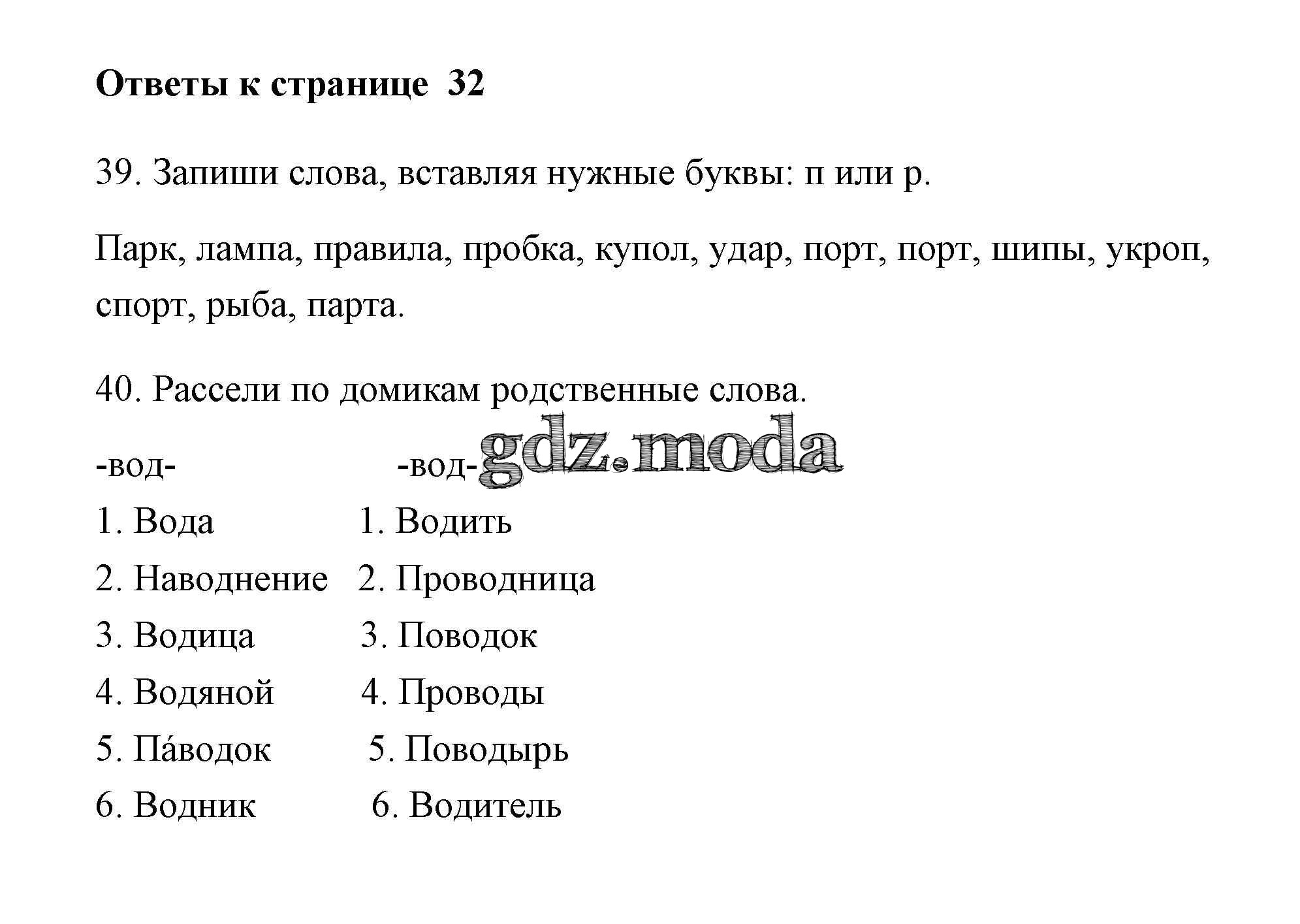ОТВЕТ на задание № 32 Тетрадь для самостоятельной работы по Русскому языку 2 класс Байкова