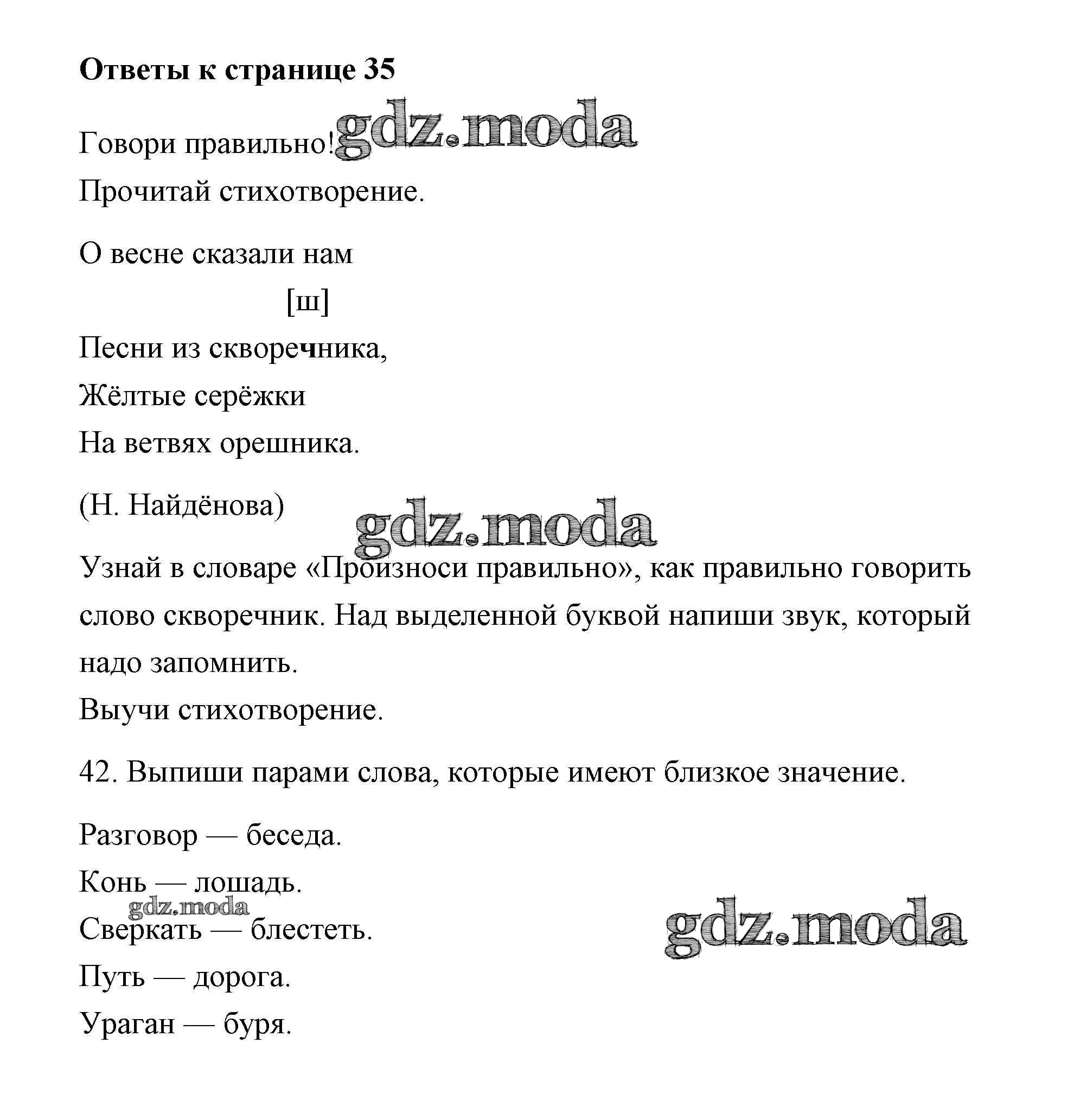 ОТВЕТ на задание № 35 Тетрадь для самостоятельной работы по Русскому языку 2 класс Байкова