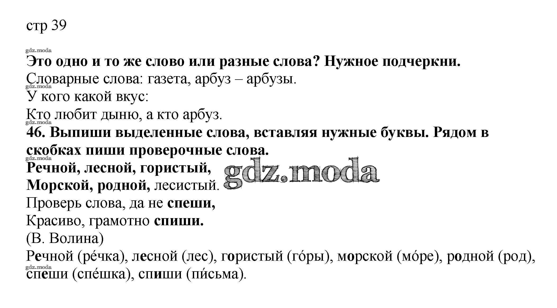 ОТВЕТ на задание № 39 Тетрадь для самостоятельной работы по Русскому языку 2 класс Байкова