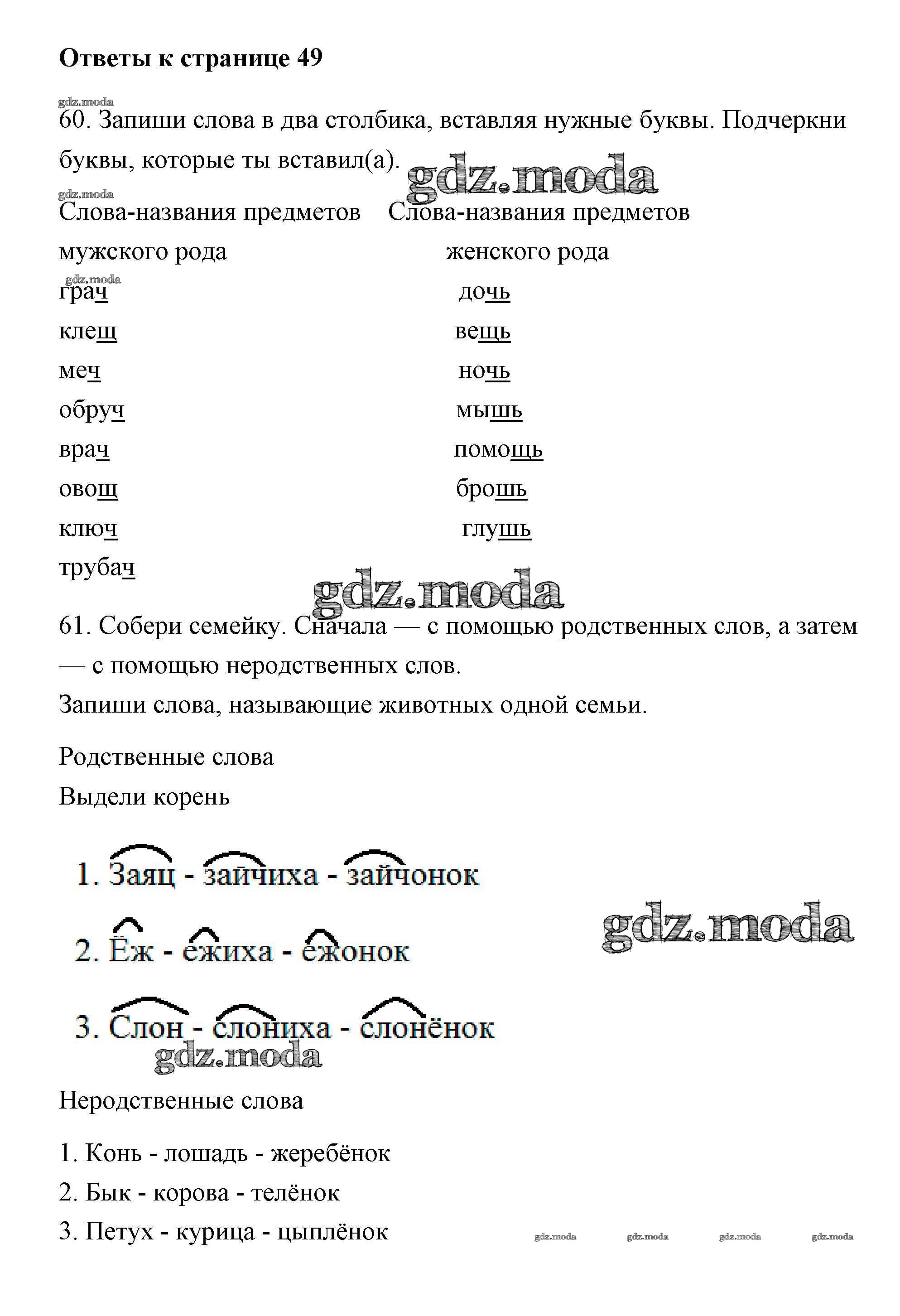 ОТВЕТ на задание № 49 Тетрадь для самостоятельной работы по Русскому языку 2 класс Байкова