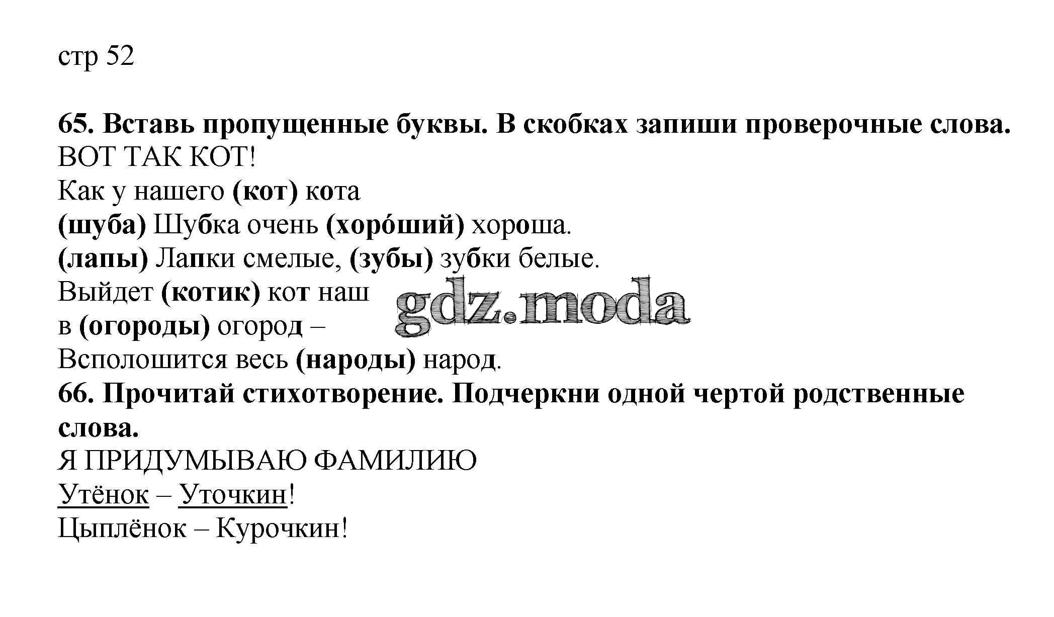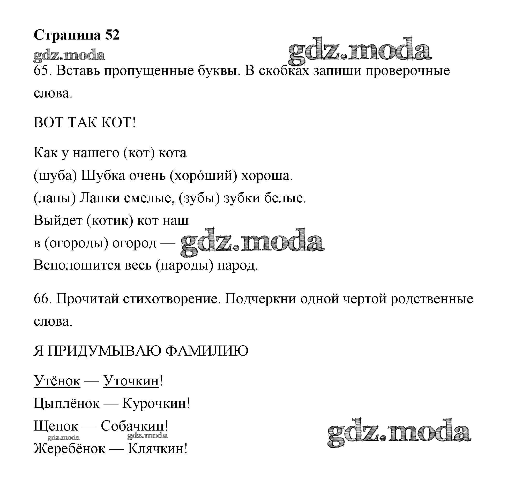 ОТВЕТ на задание № 52 Тетрадь для самостоятельной работы по Русскому языку 2 класс Байкова