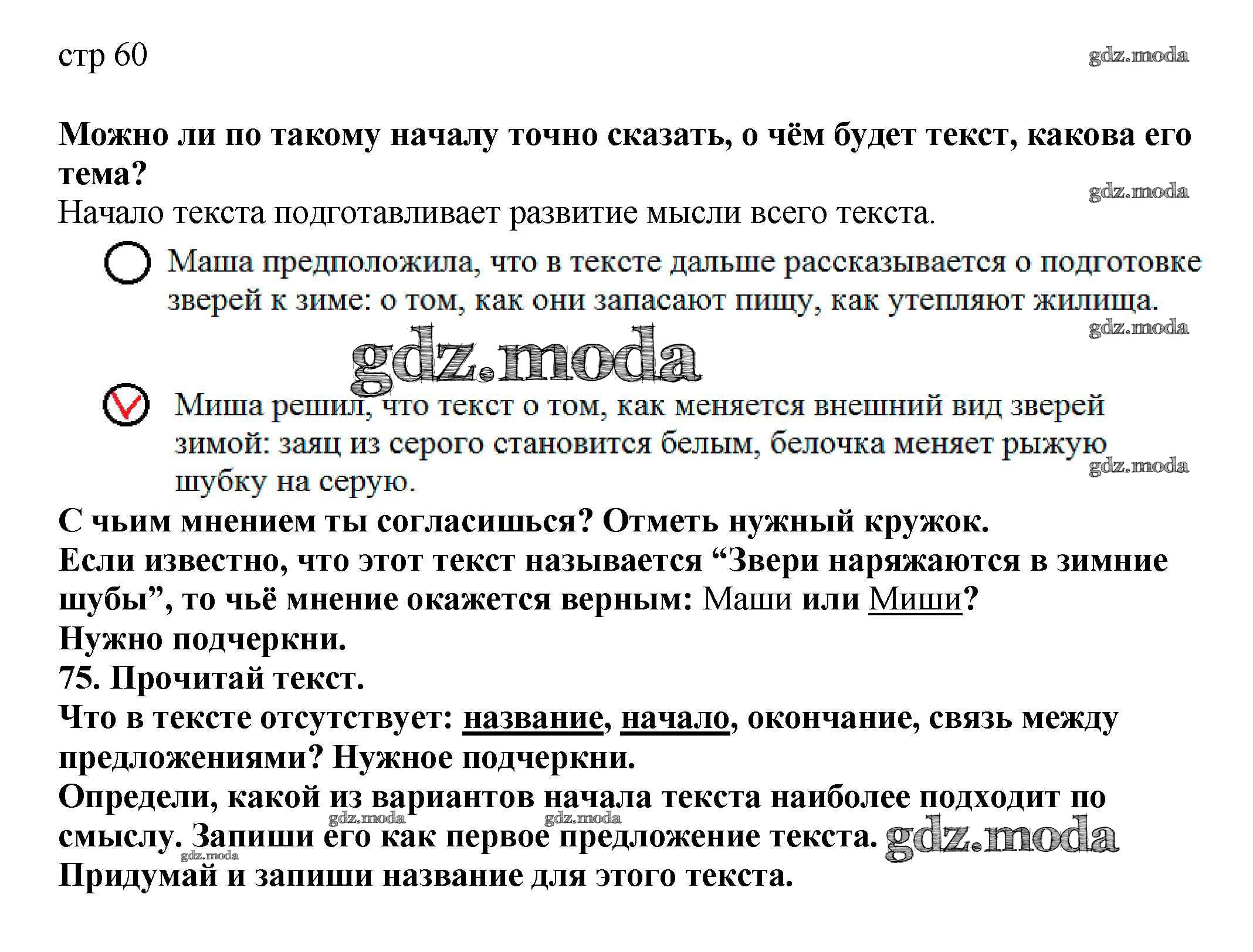 ОТВЕТ на задание № 60 Тетрадь для самостоятельной работы по Русскому языку 2 класс Байкова