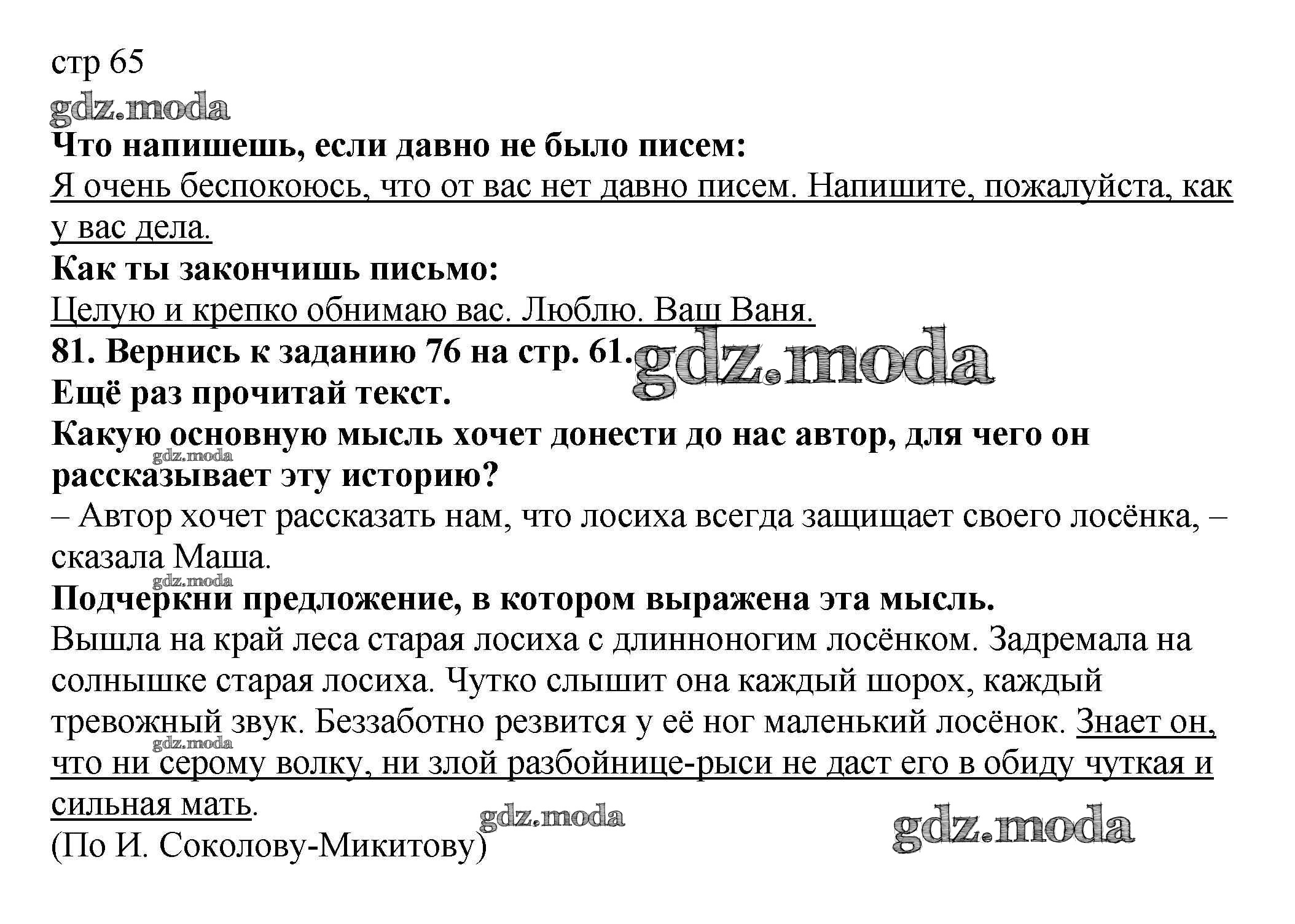 ОТВЕТ на задание № 65 Тетрадь для самостоятельной работы по Русскому языку 2 класс Байкова