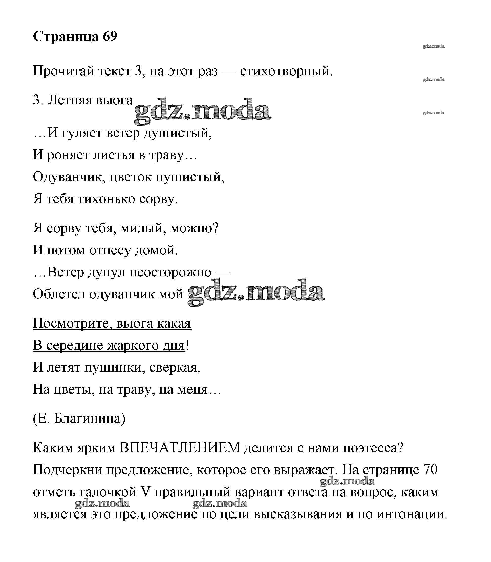 ГДЗ решение к заданию № 69 Русский язык 2 класс Тетрадь для самостоятельной работы Байкова Т.А. Академкнига 2017 Часть 1, Часть 2 ФГОС бесплатно на гдз.мода!