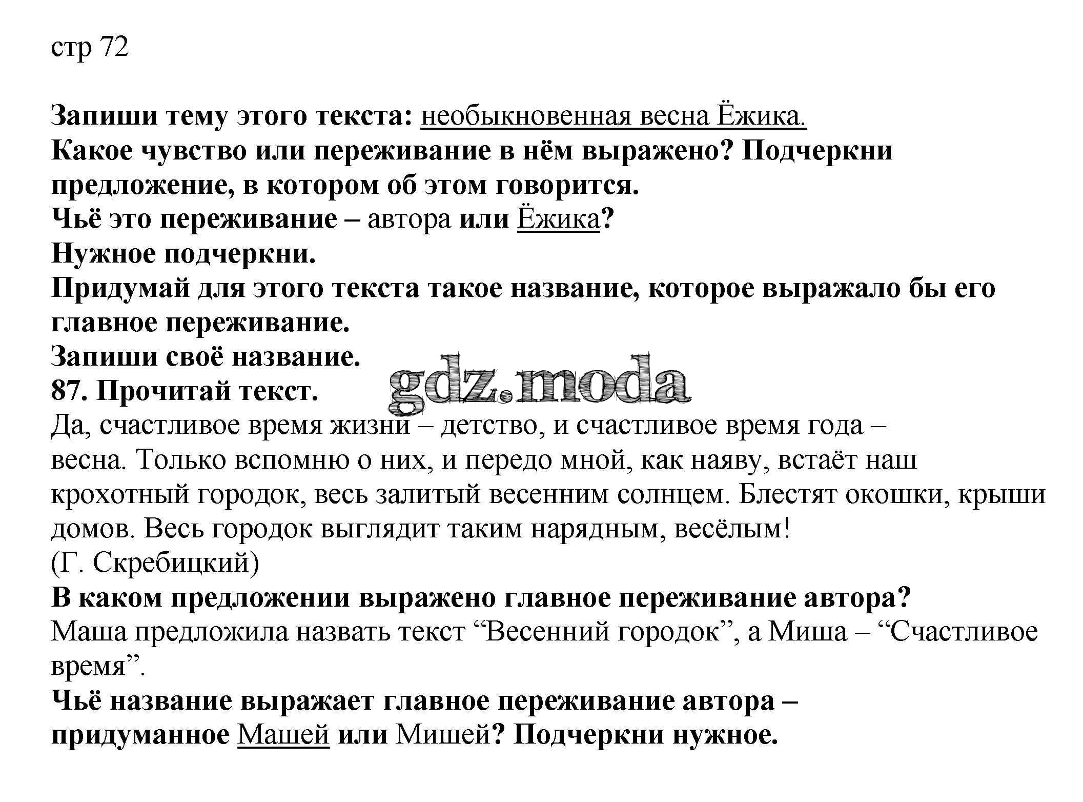 ОТВЕТ на задание № 72 Тетрадь для самостоятельной работы по Русскому языку 2 класс Байкова