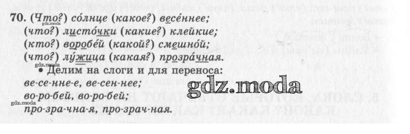 ОТВЕТ на задание № 70 Учебник по Русскому языку 2 класс Бунеев Школа 2100