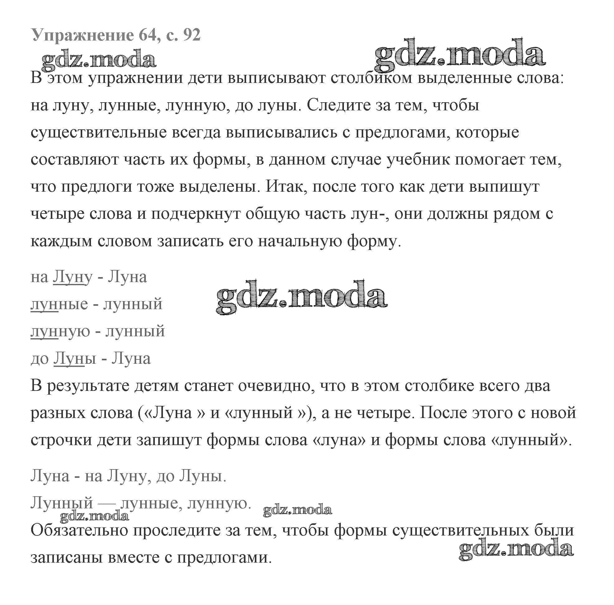 ОТВЕТ на задание № 64 Учебник по Русскому языку 2 класс Чуракова Перспективная начальная школа