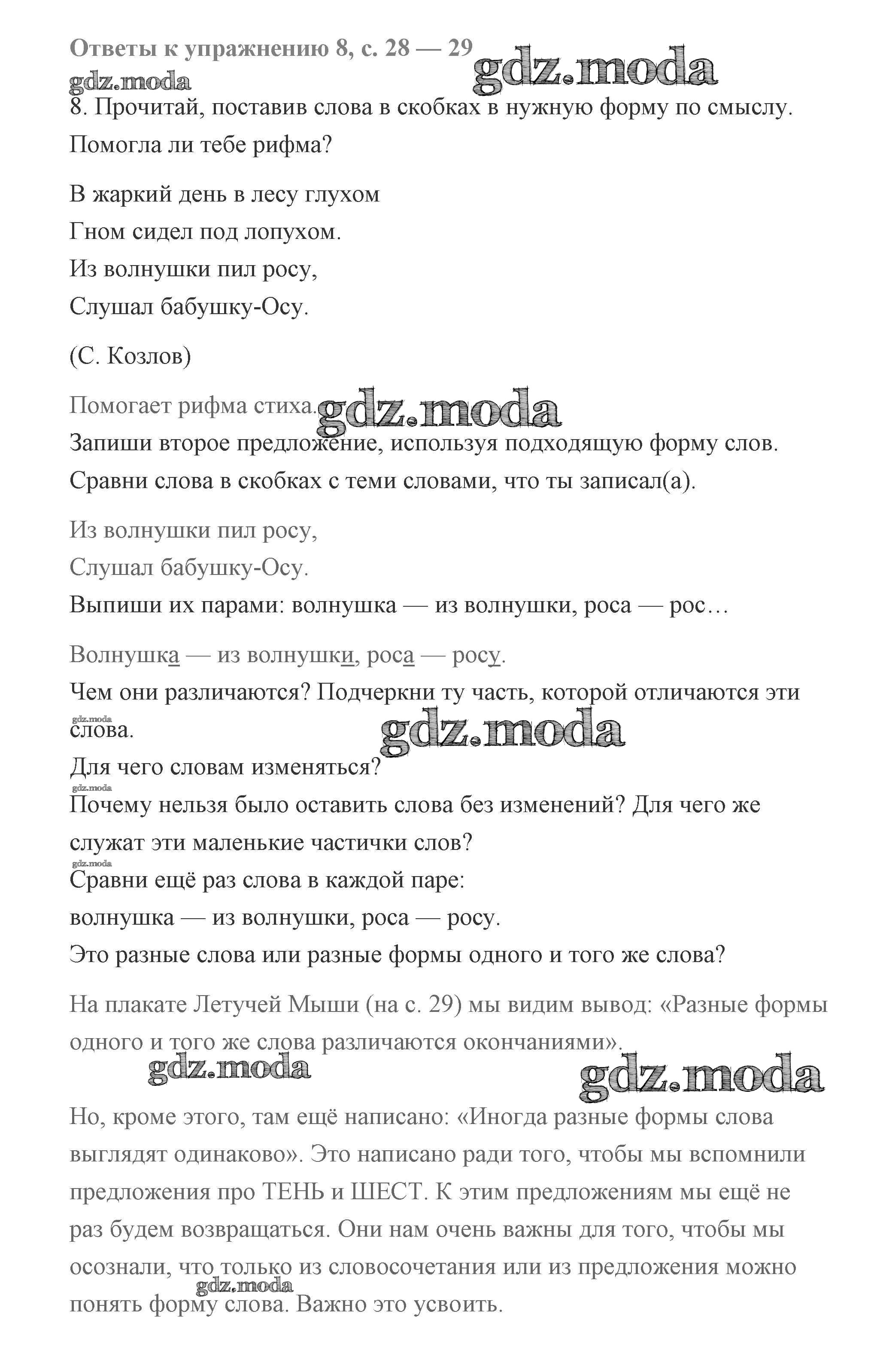 ОТВЕТ на задание № 8 Учебник по Русскому языку 2 класс Чуракова Перспективная начальная школа