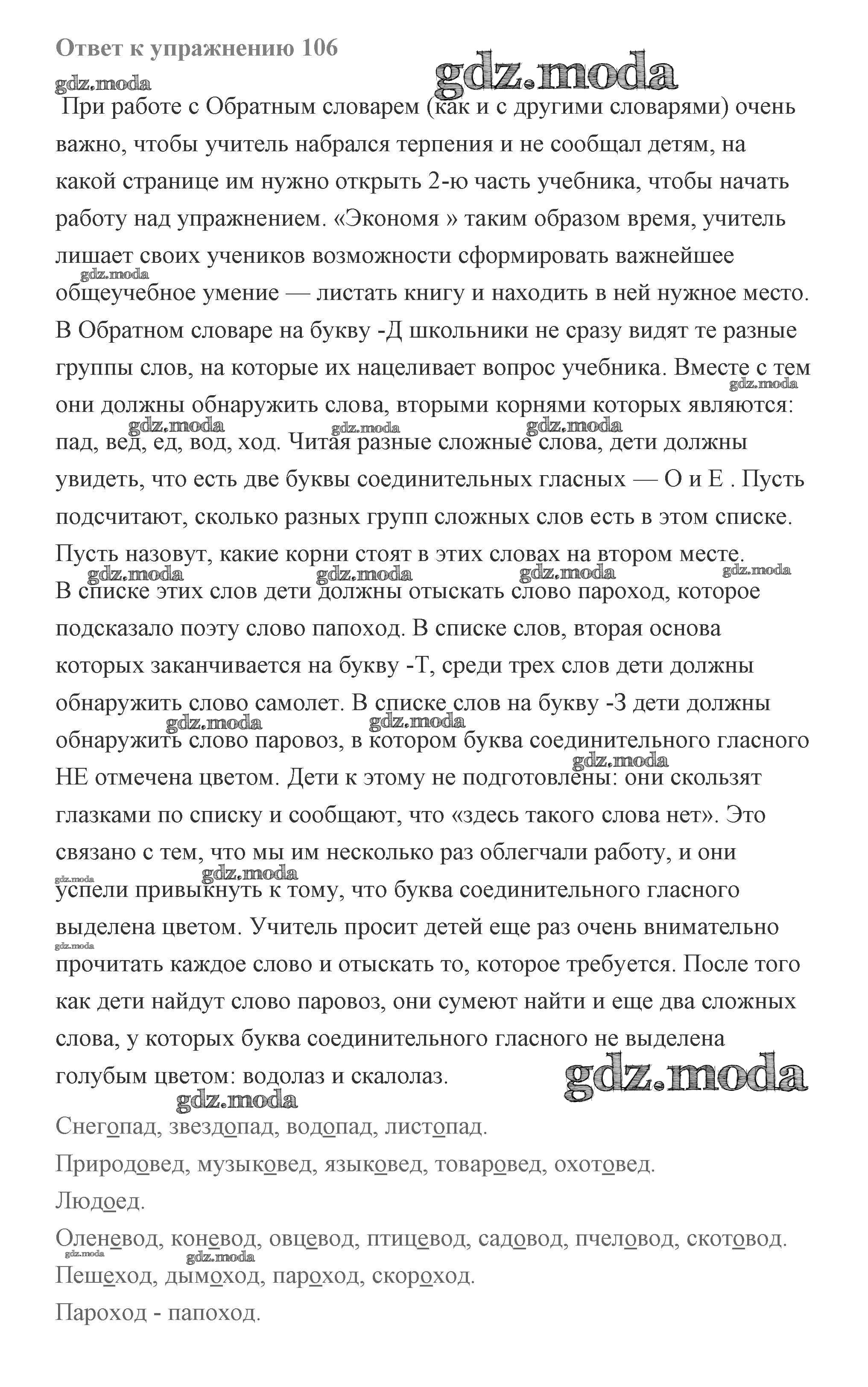 ОТВЕТ на задание № 106 Учебник по Русскому языку 2 класс Чуракова Перспективная начальная школа