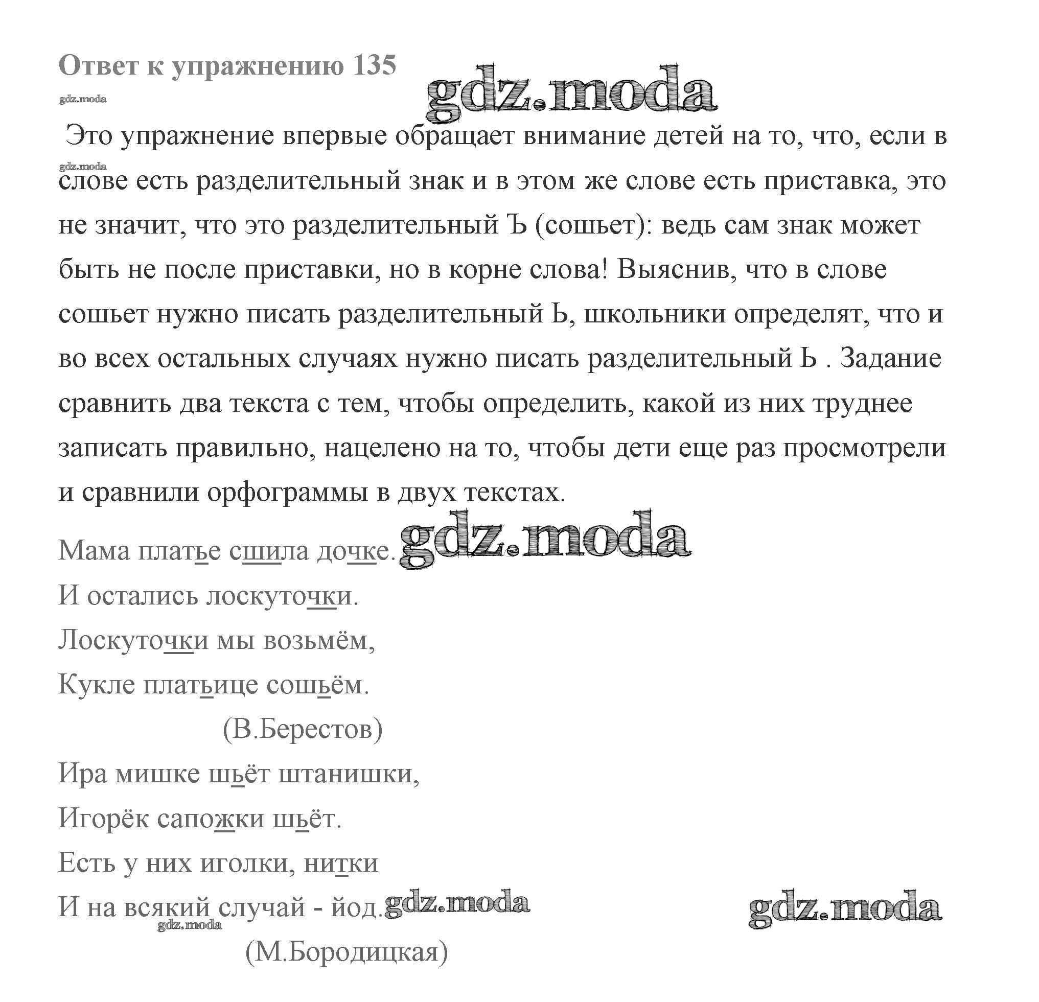 ОТВЕТ на задание № 135 Учебник по Русскому языку 2 класс Чуракова Перспективная начальная школа