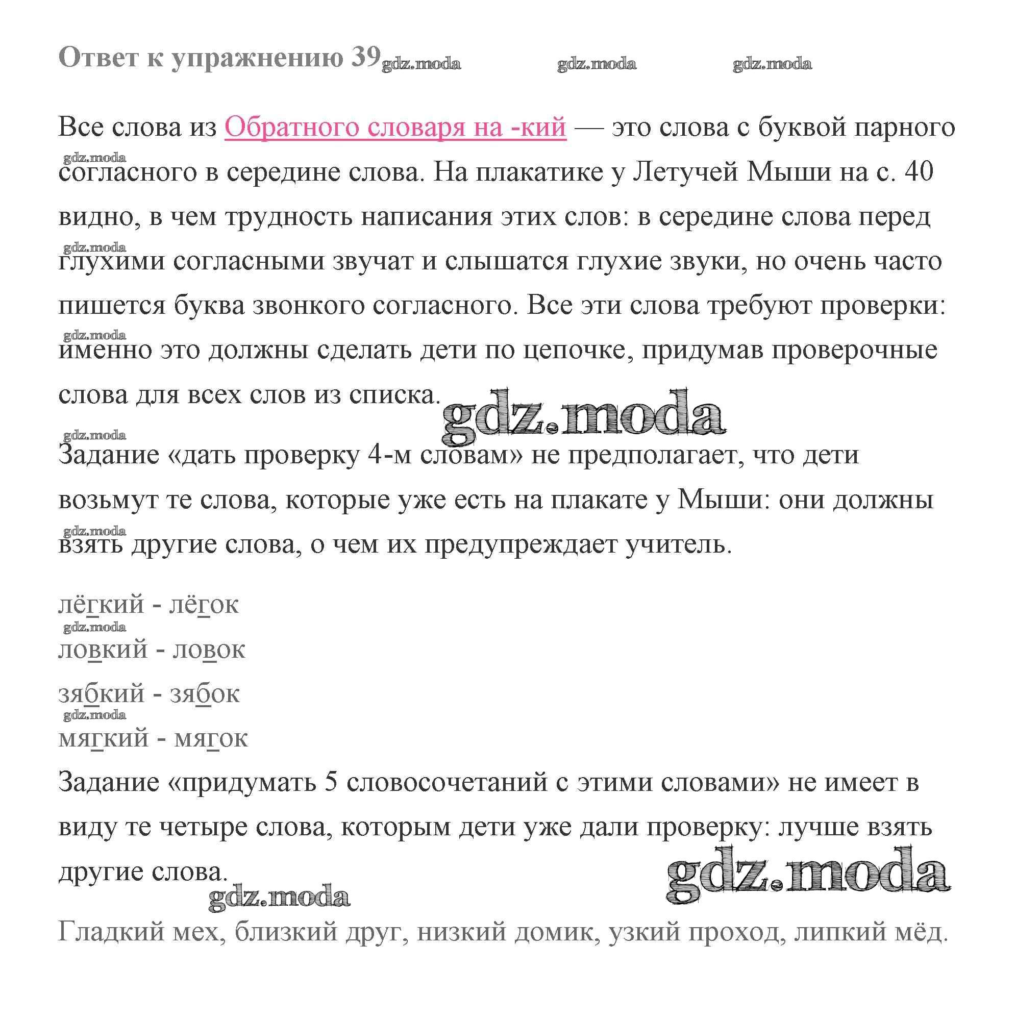 ГДЗ решение к заданию № 39 Русский язык 2 класс Чуракова Академкнига 2016 Часть 1, Часть 3 бесплатно на гдз.мода!