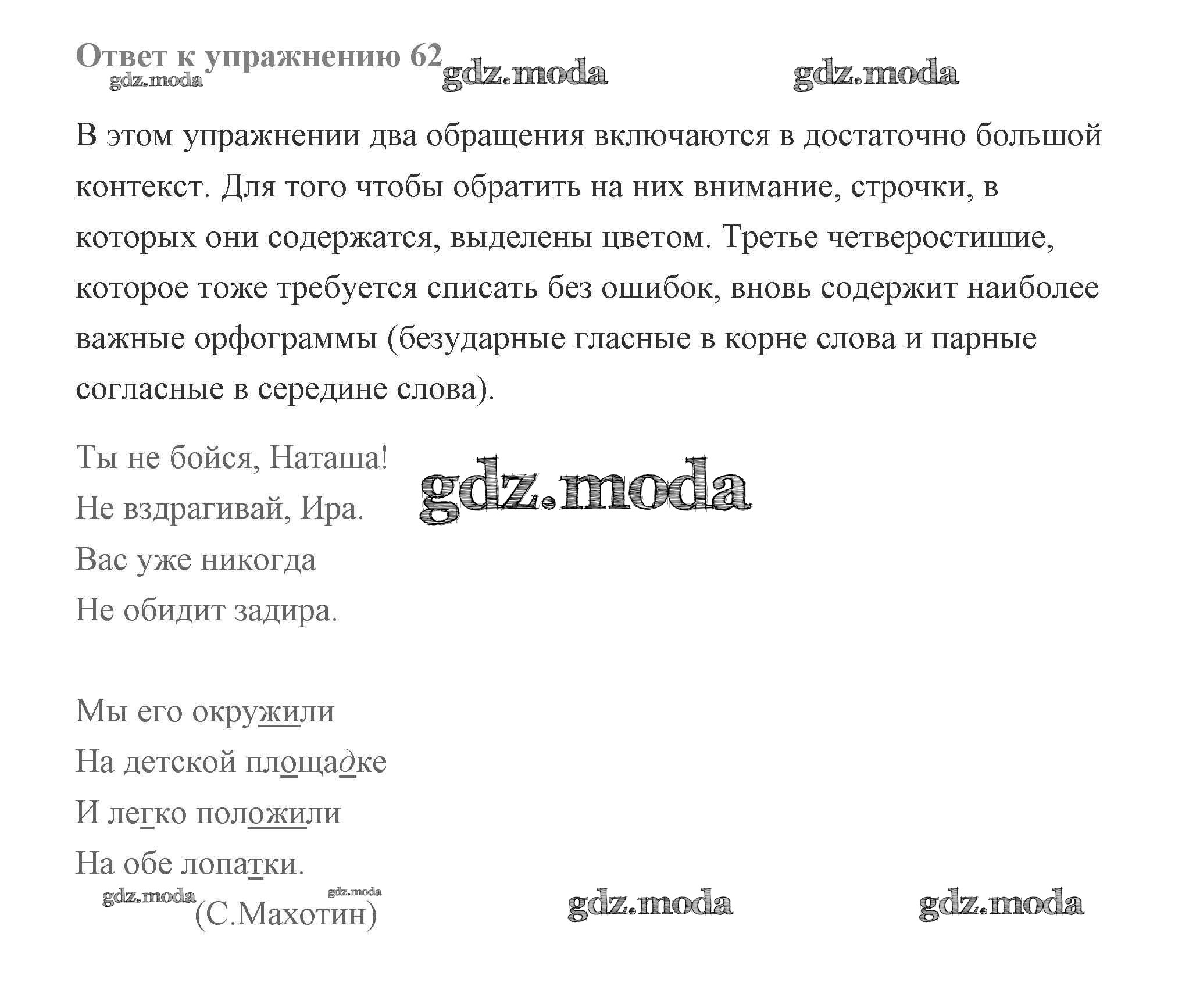 ГДЗ решение к заданию № 62 Русский язык 2 класс Чуракова Академкнига 2016 Часть 1, Часть 3 бесплатно на гдз.мода!
