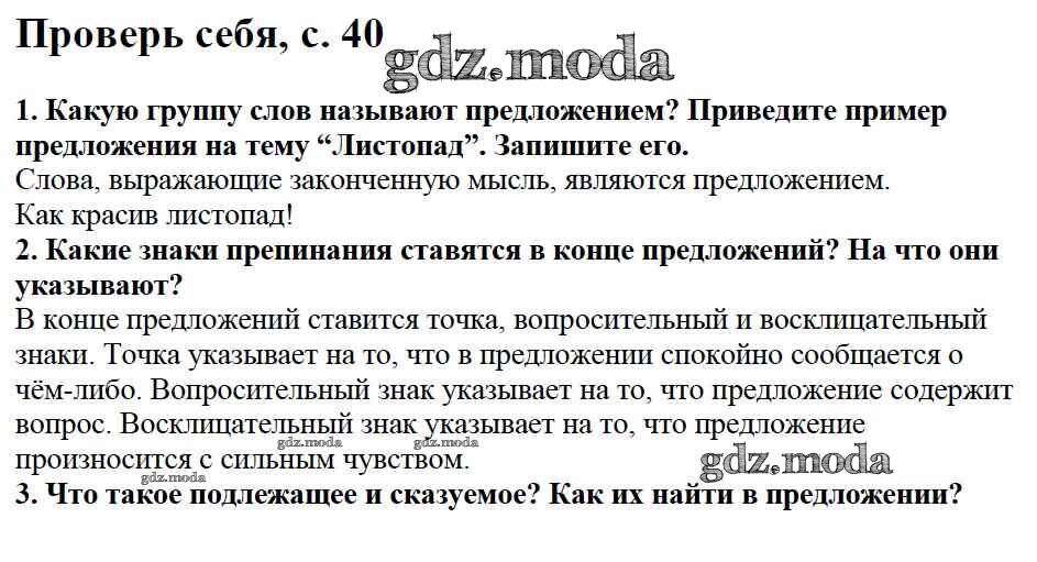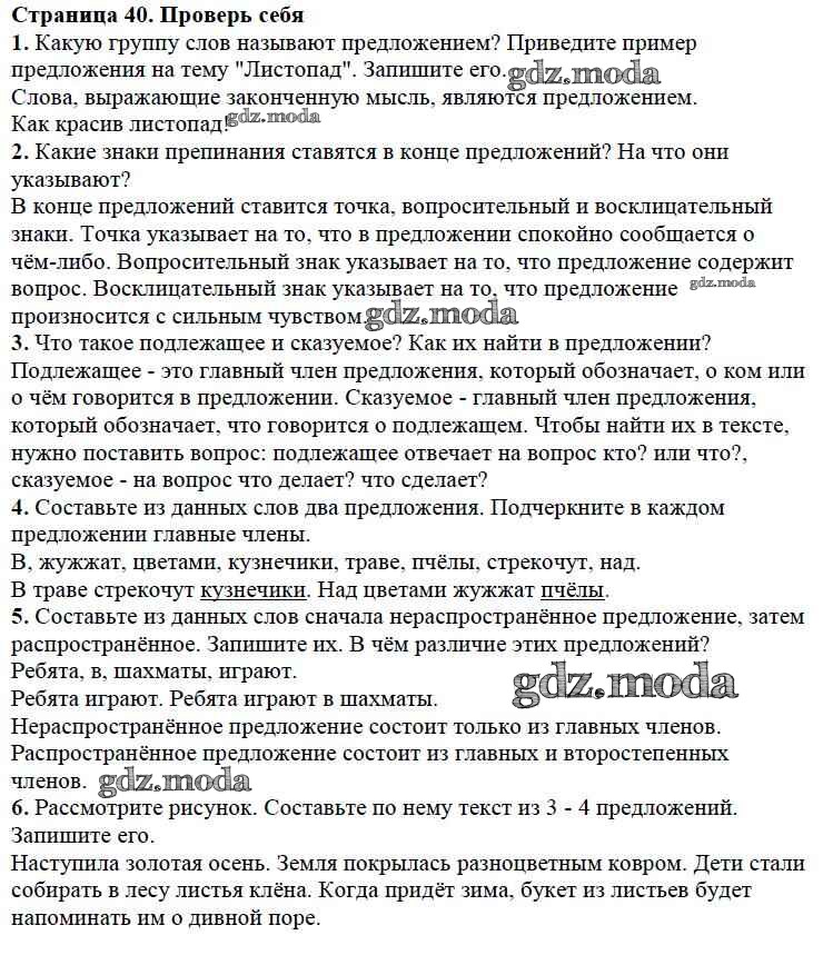 ОТВЕТ на задание № стр. 40 Учебник по Русскому языку 2 класс Канакина Школа России