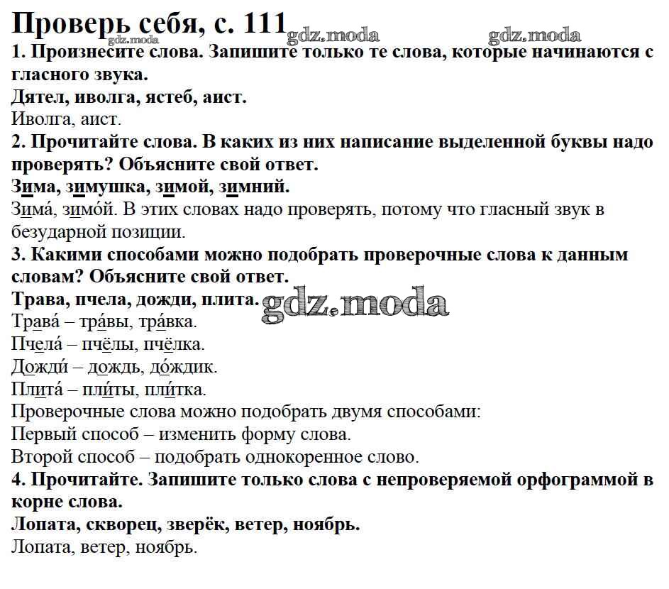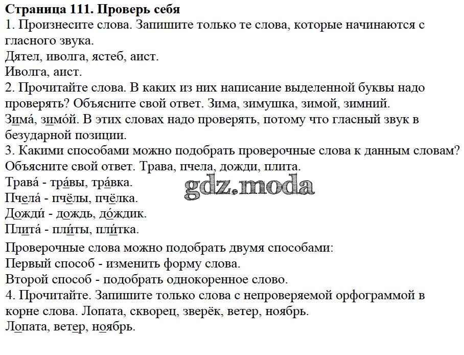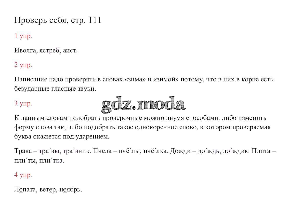 ОТВЕТ на задание № стр. 111 Учебник по Русскому языку 2 класс Канакина Школа России