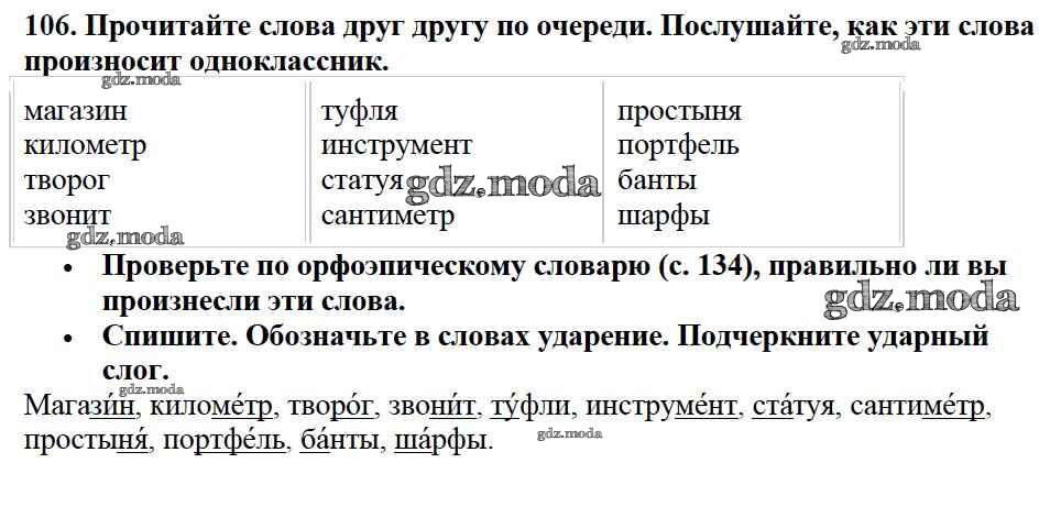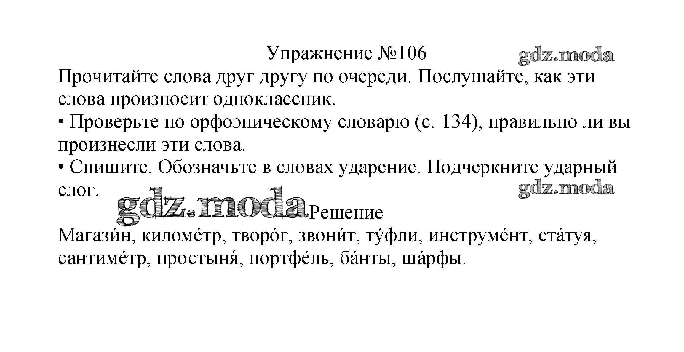 ОТВЕТ на задание № 106 Учебник по Русскому языку 2 класс Канакина Школа России