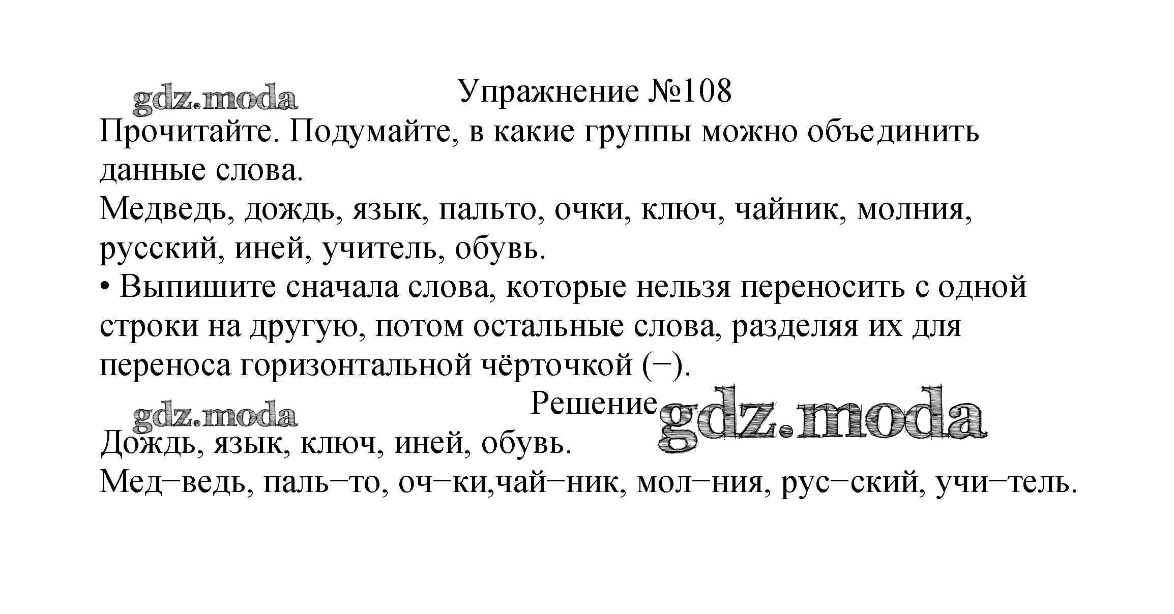 ОТВЕТ на задание № 108 Учебник по Русскому языку 2 класс Канакина Школа России