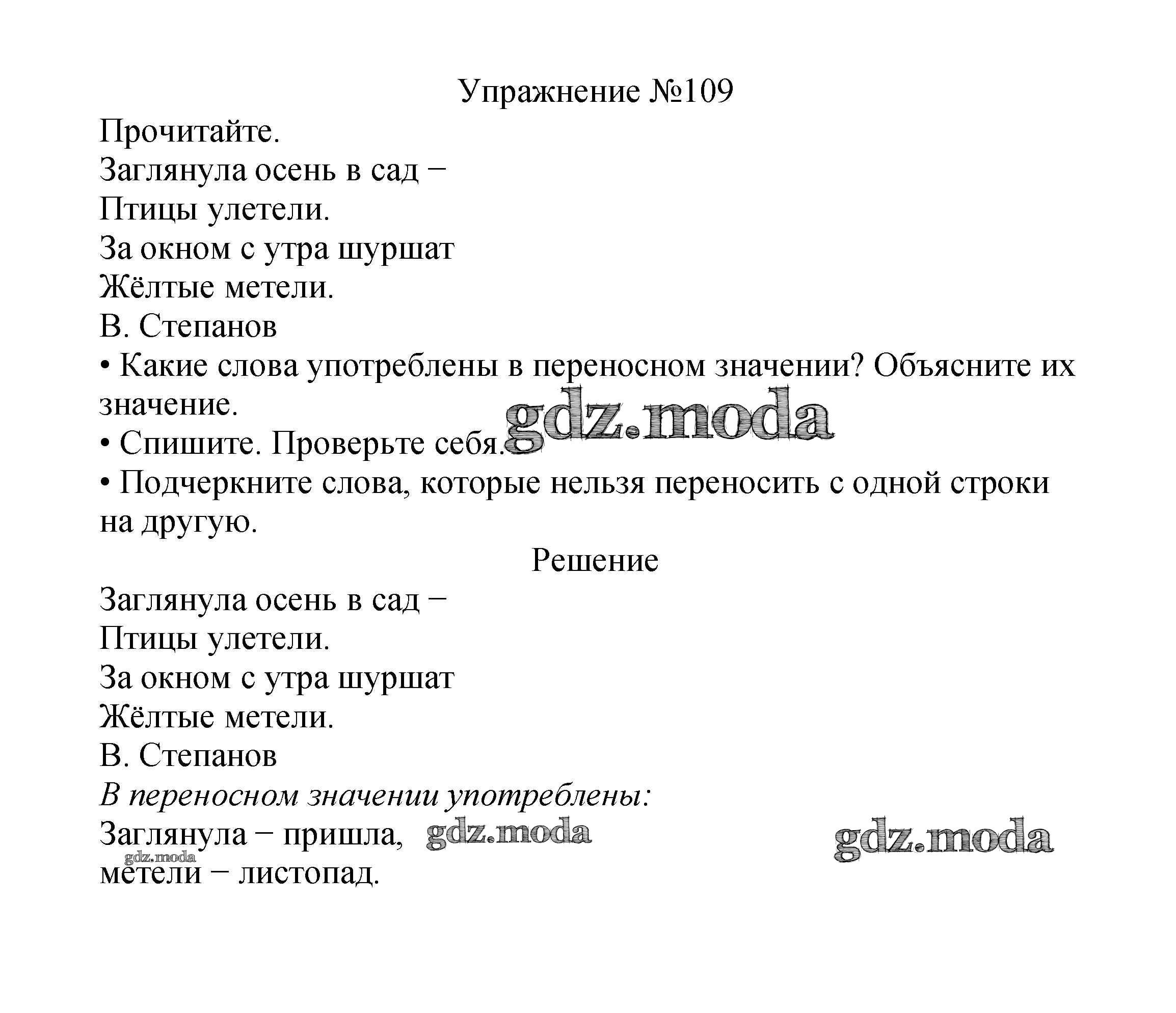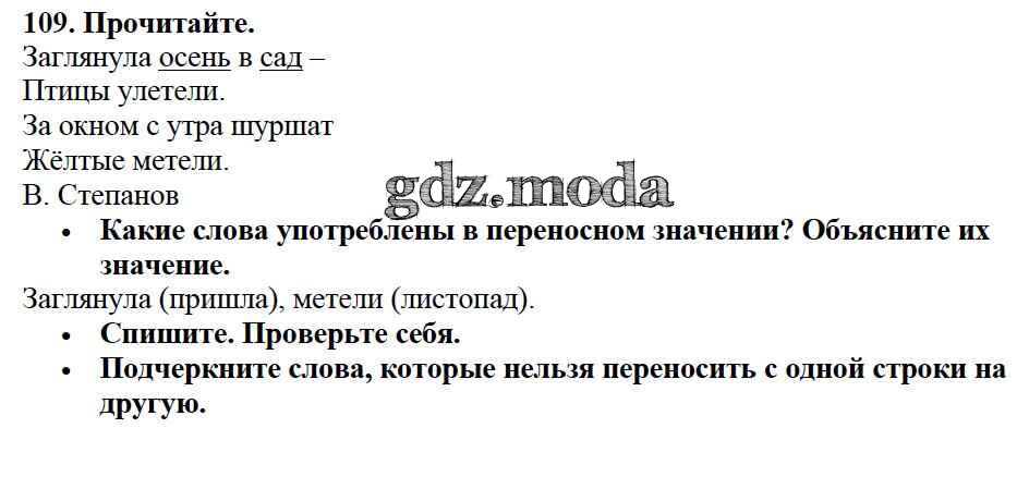 ОТВЕТ на задание № 109 Учебник по Русскому языку 2 класс Канакина Школа России