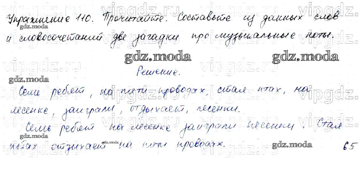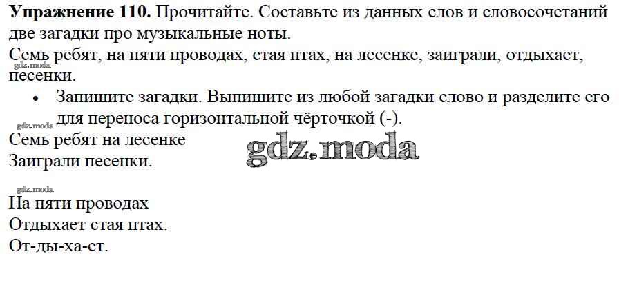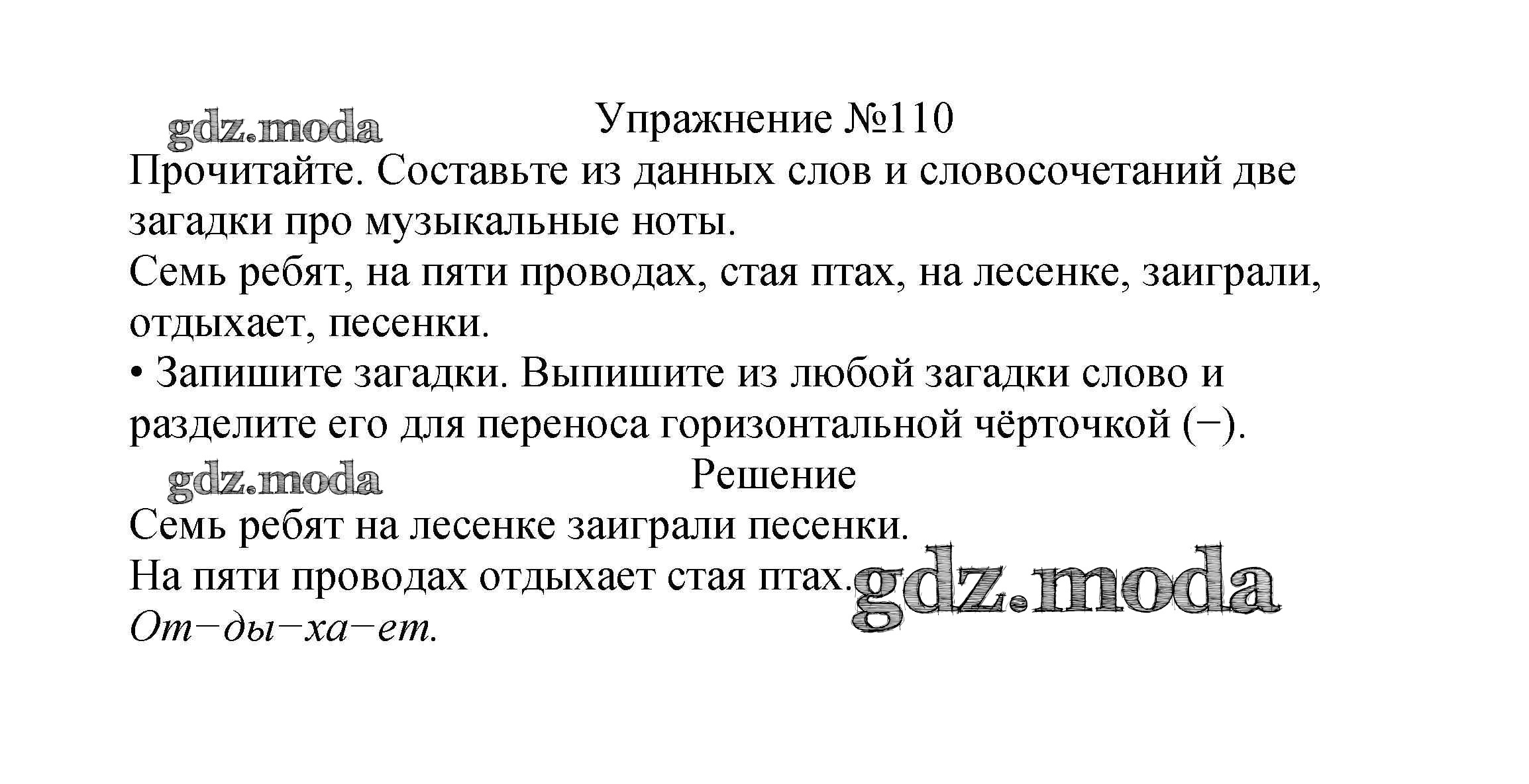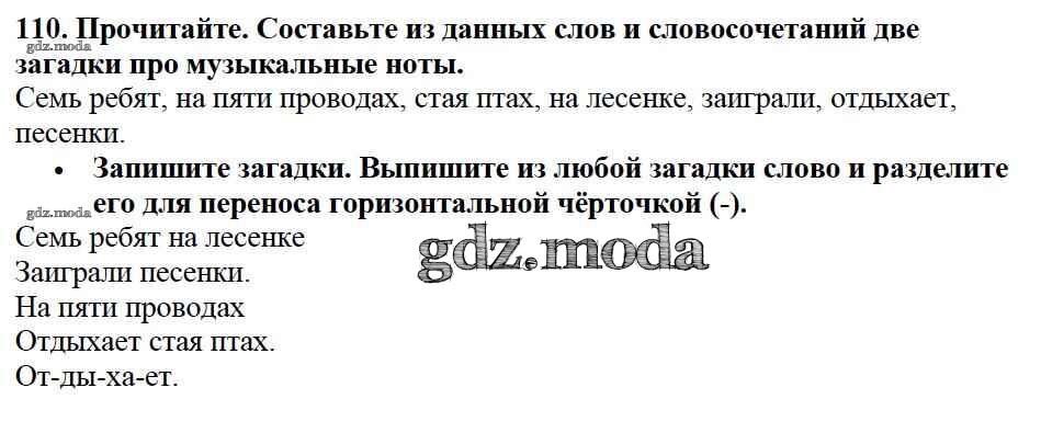 ОТВЕТ на задание № 110 Учебник по Русскому языку 2 класс Канакина Школа России