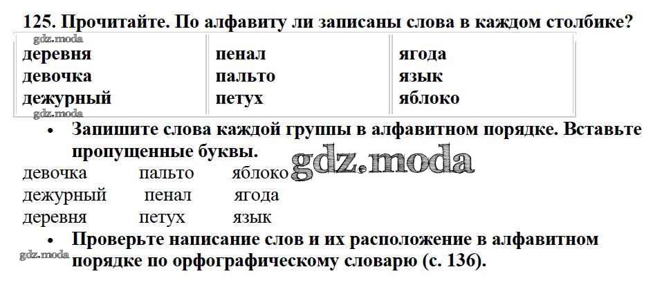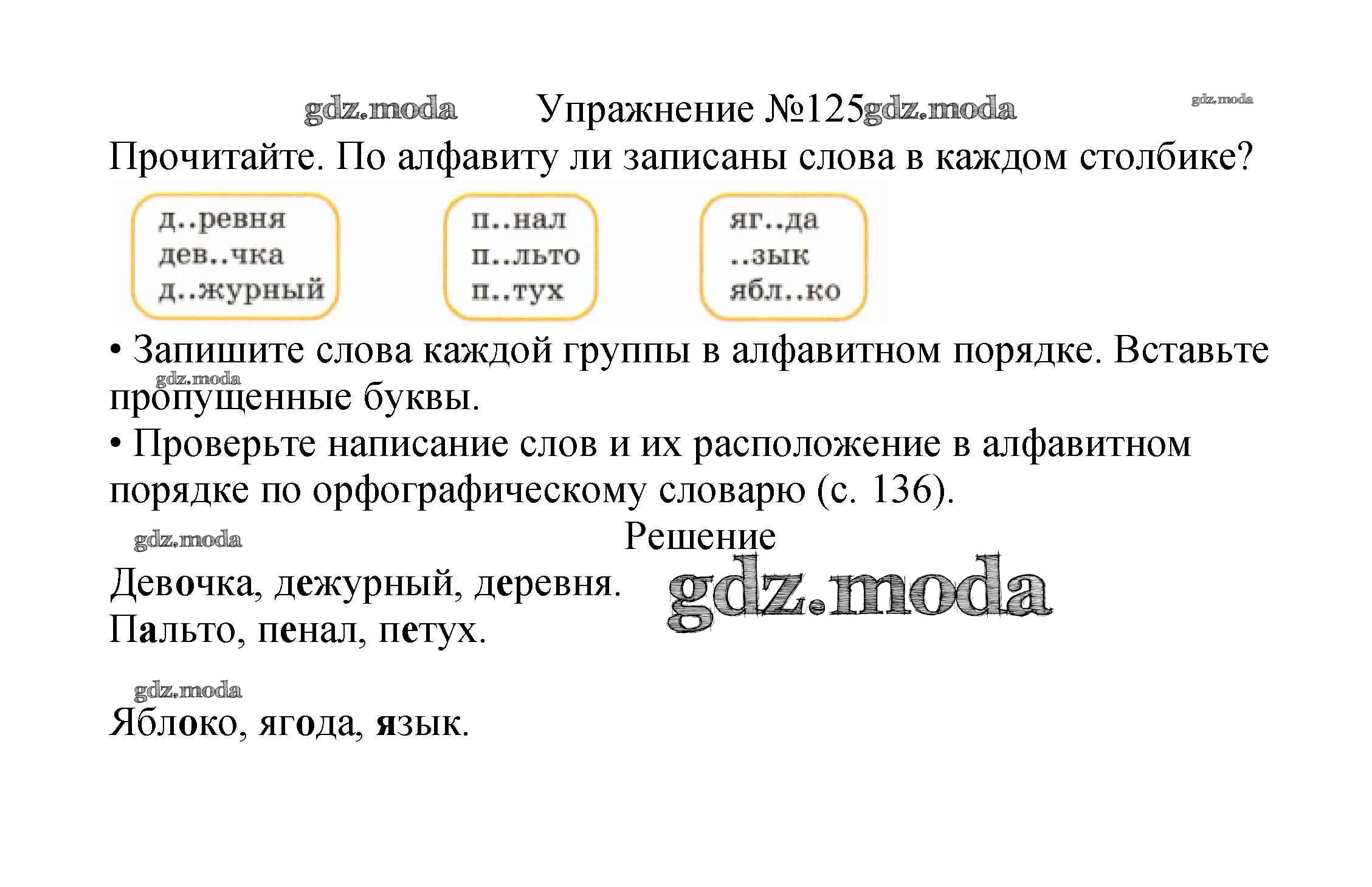 ОТВЕТ на задание № 125 Учебник по Русскому языку 2 класс Канакина Школа России