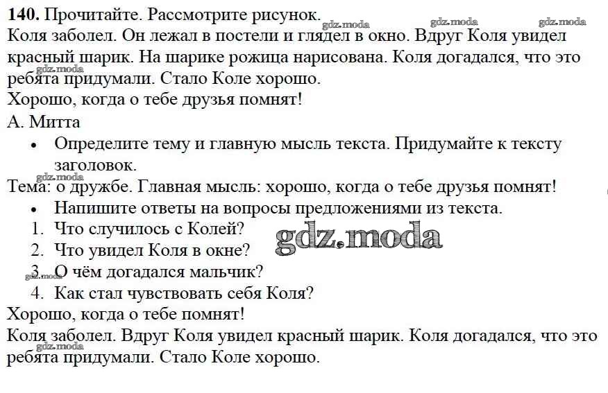 ОТВЕТ на задание № 140 Учебник по Русскому языку 2 класс Канакина Школа России