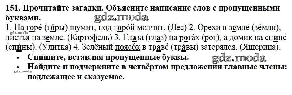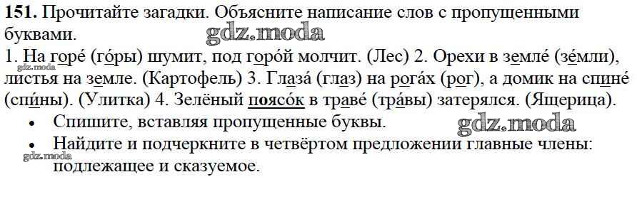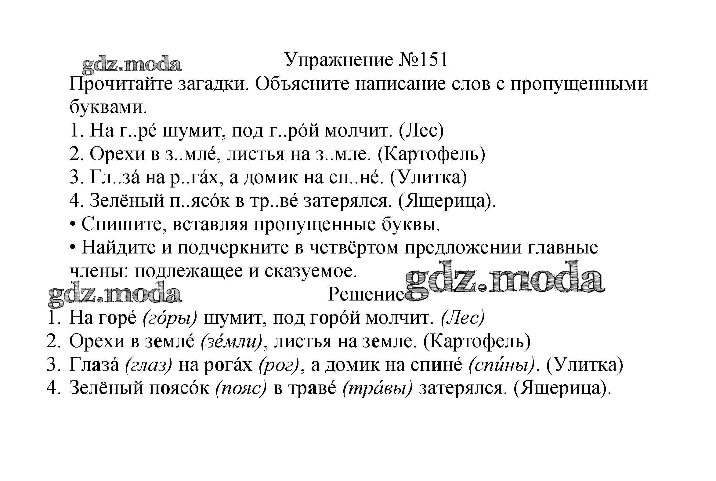 ОТВЕТ на задание № 151 Учебник по Русскому языку 2 класс Канакина Школа России