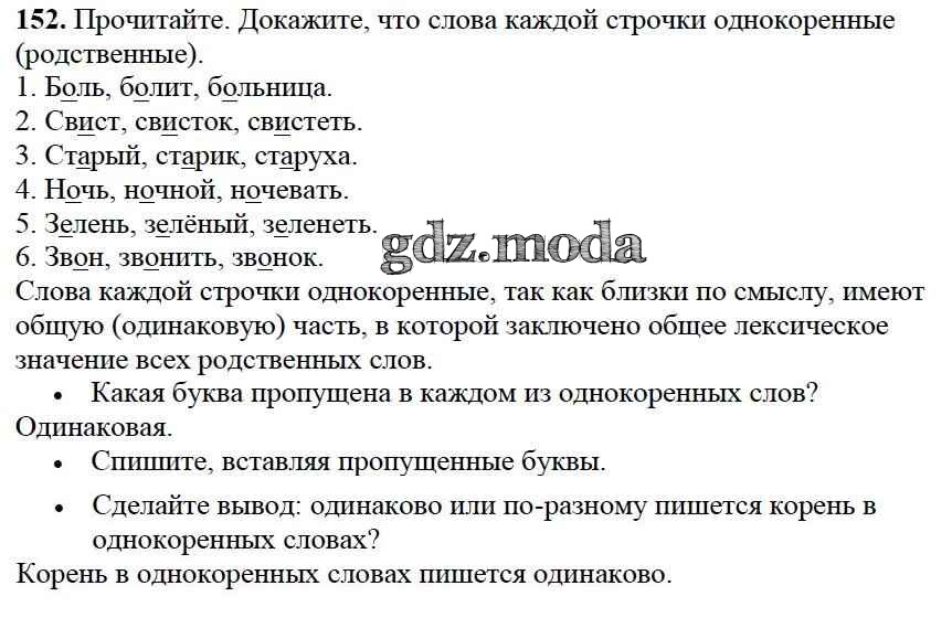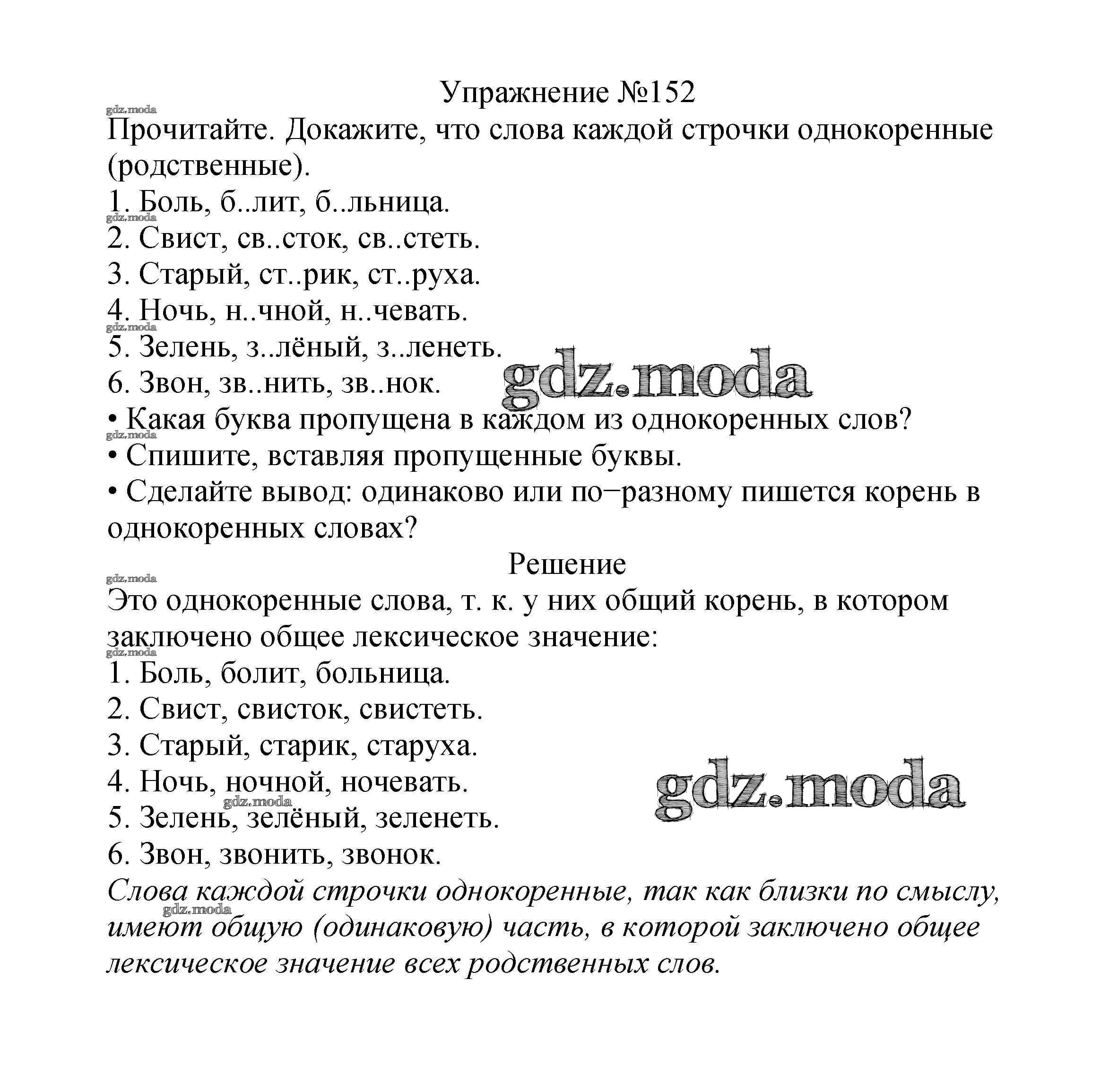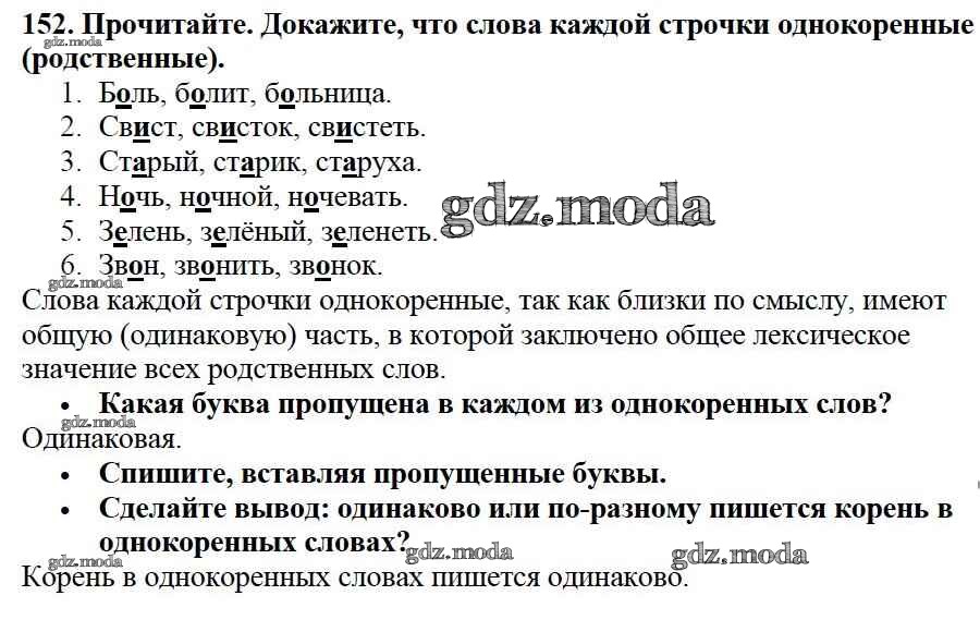 ОТВЕТ на задание № 152 Учебник по Русскому языку 2 класс Канакина Школа России