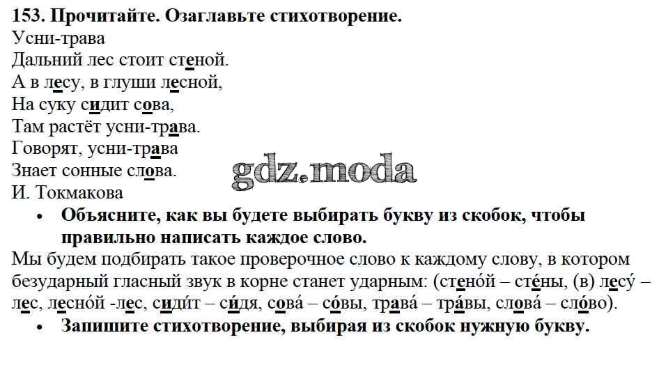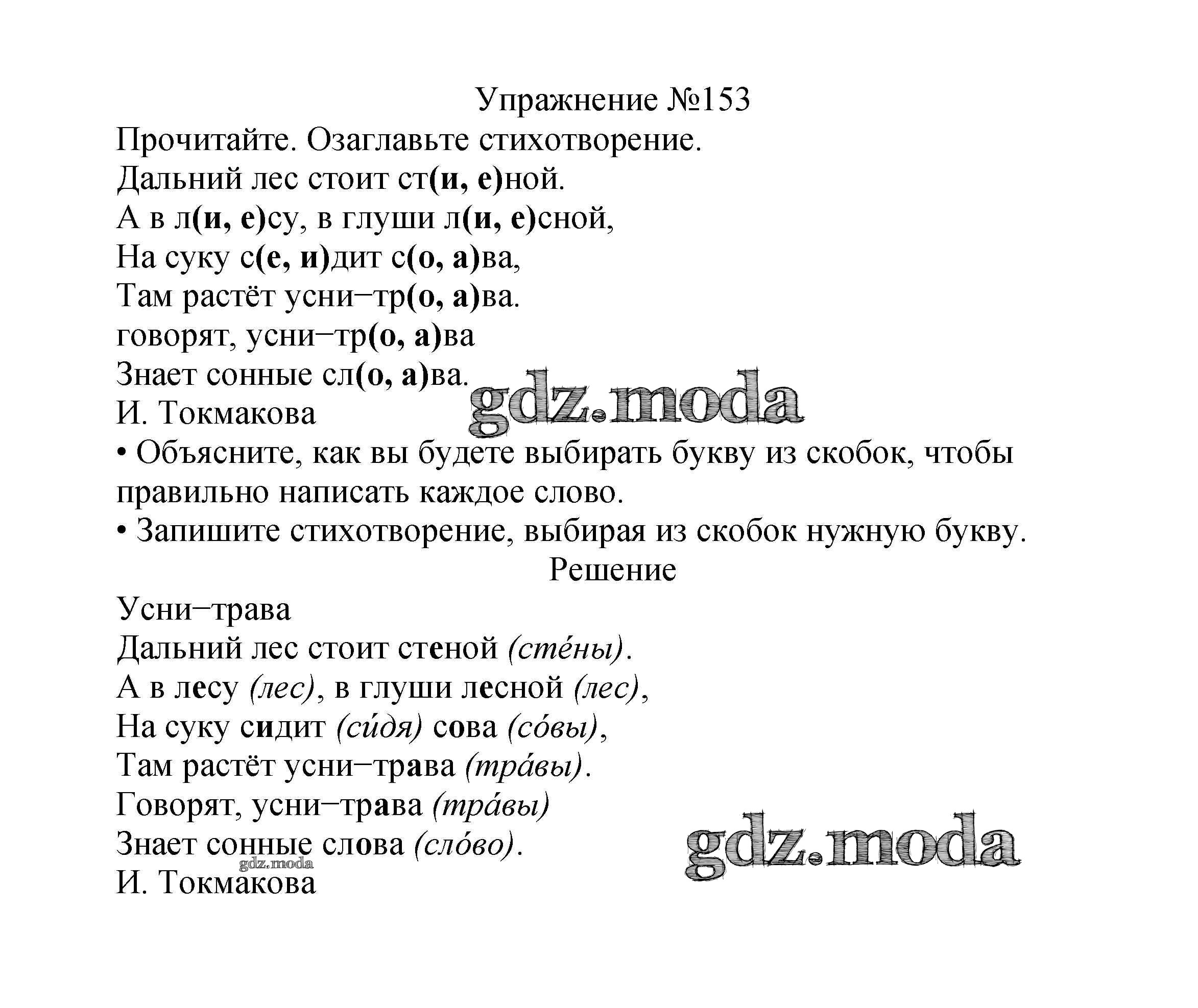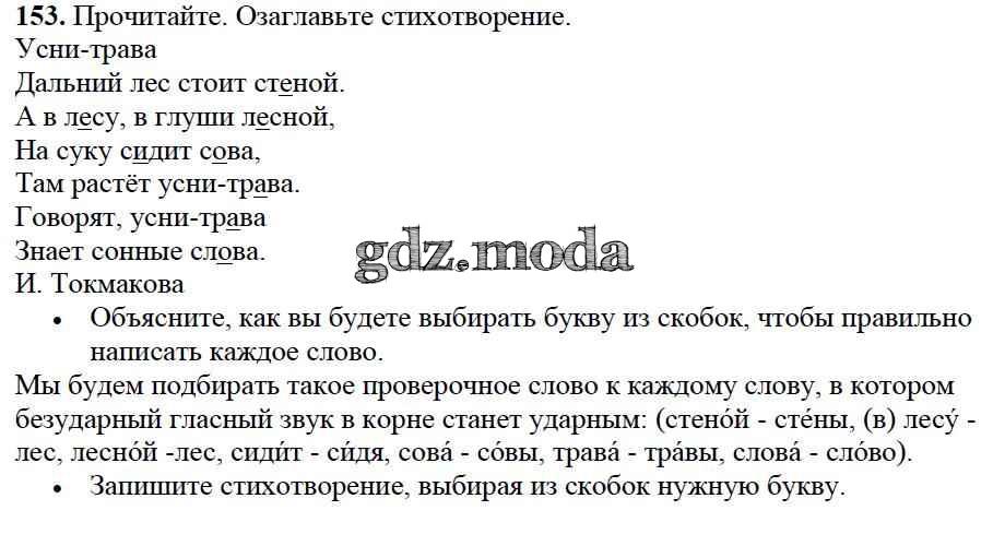 ОТВЕТ на задание № 153 Учебник по Русскому языку 2 класс Канакина Школа России