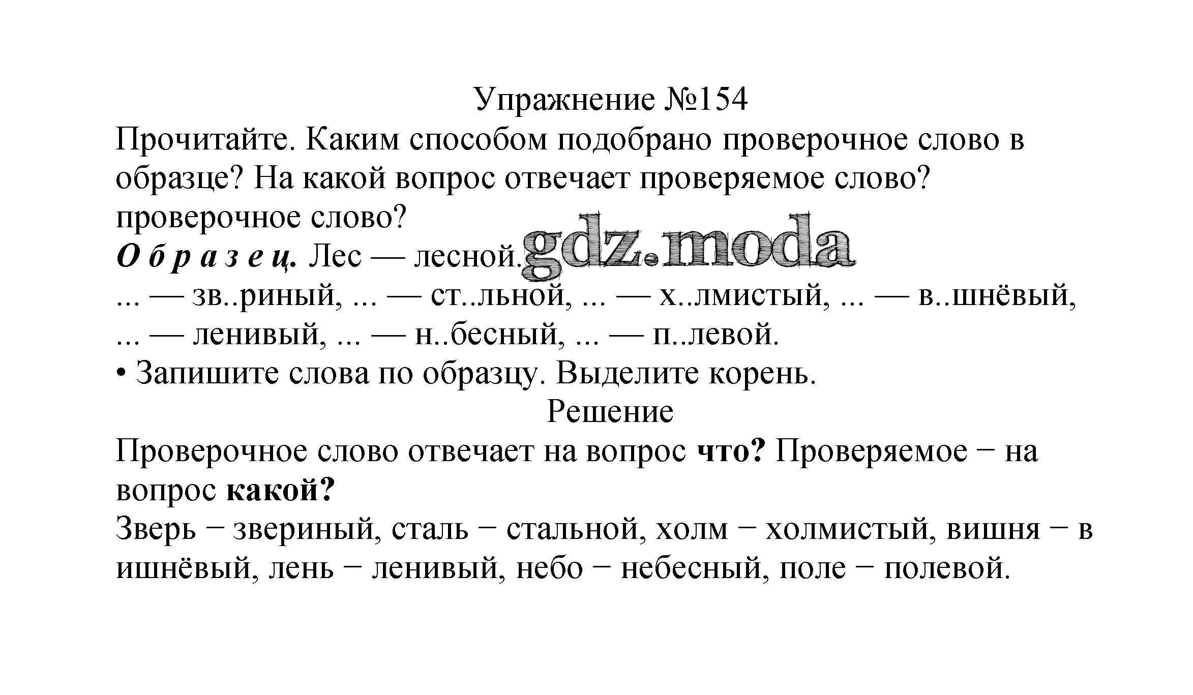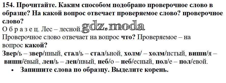 ОТВЕТ на задание № 154 Учебник по Русскому языку 2 класс Канакина Школа России