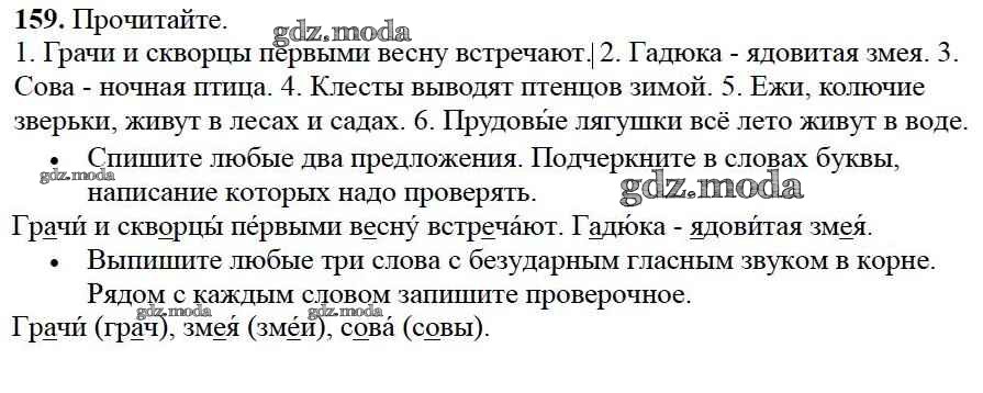 ОТВЕТ на задание № 159 Учебник по Русскому языку 2 класс Канакина Школа России