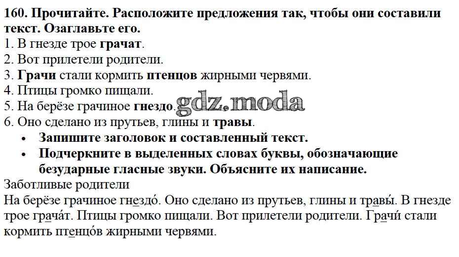 ОТВЕТ на задание № 160 Учебник по Русскому языку 2 класс Канакина Школа России