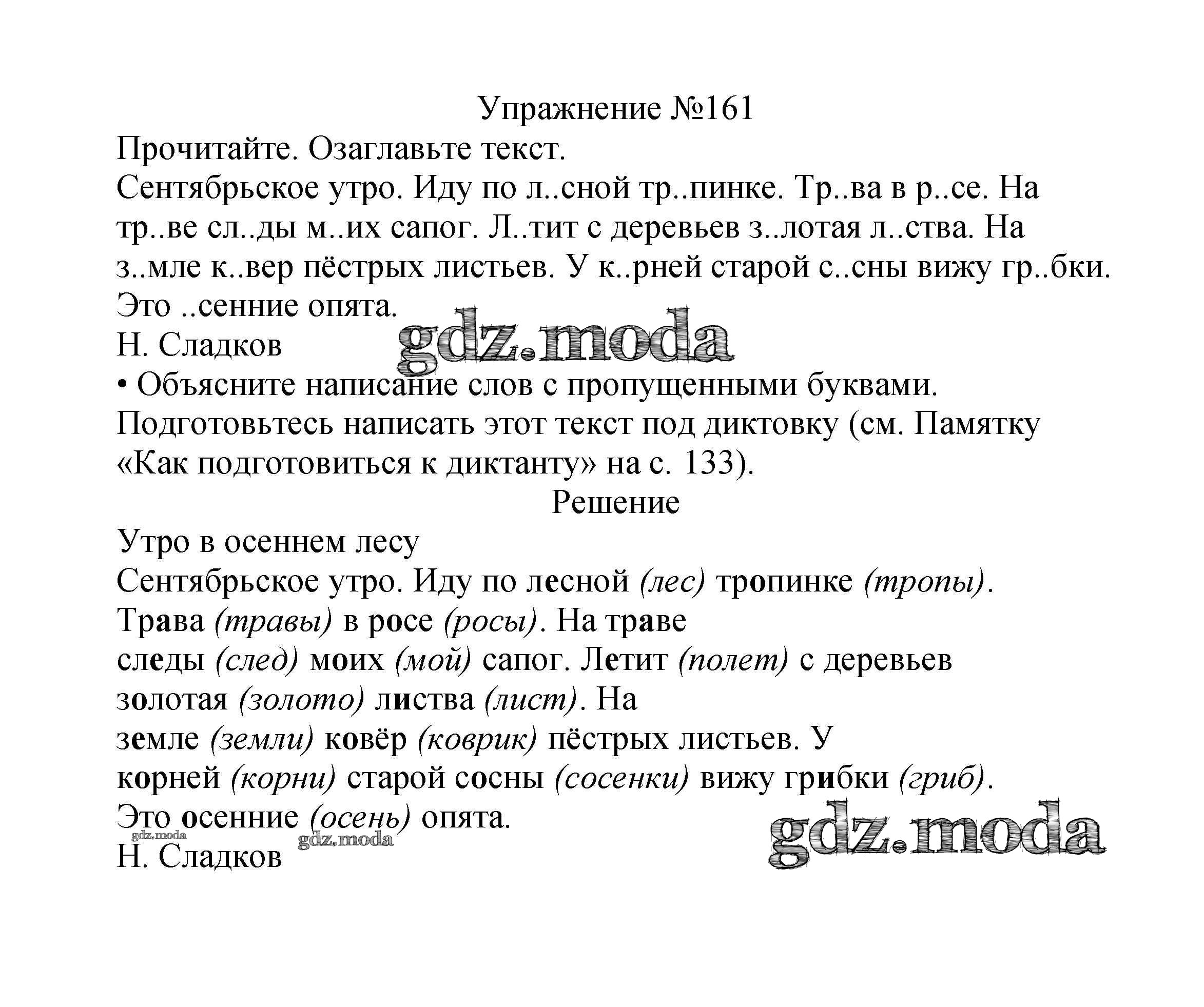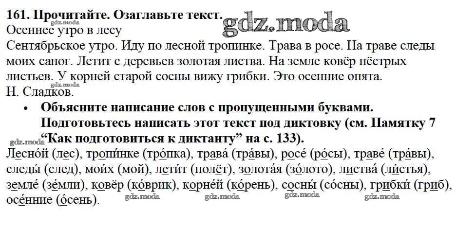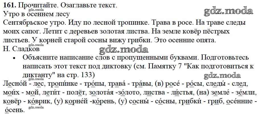 ОТВЕТ на задание № 161 Учебник по Русскому языку 2 класс Канакина Школа России