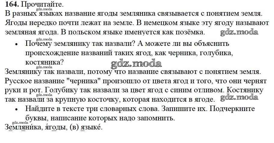 ОТВЕТ на задание № 164 Учебник по Русскому языку 2 класс Канакина Школа России