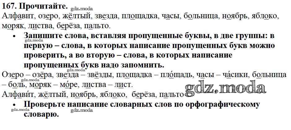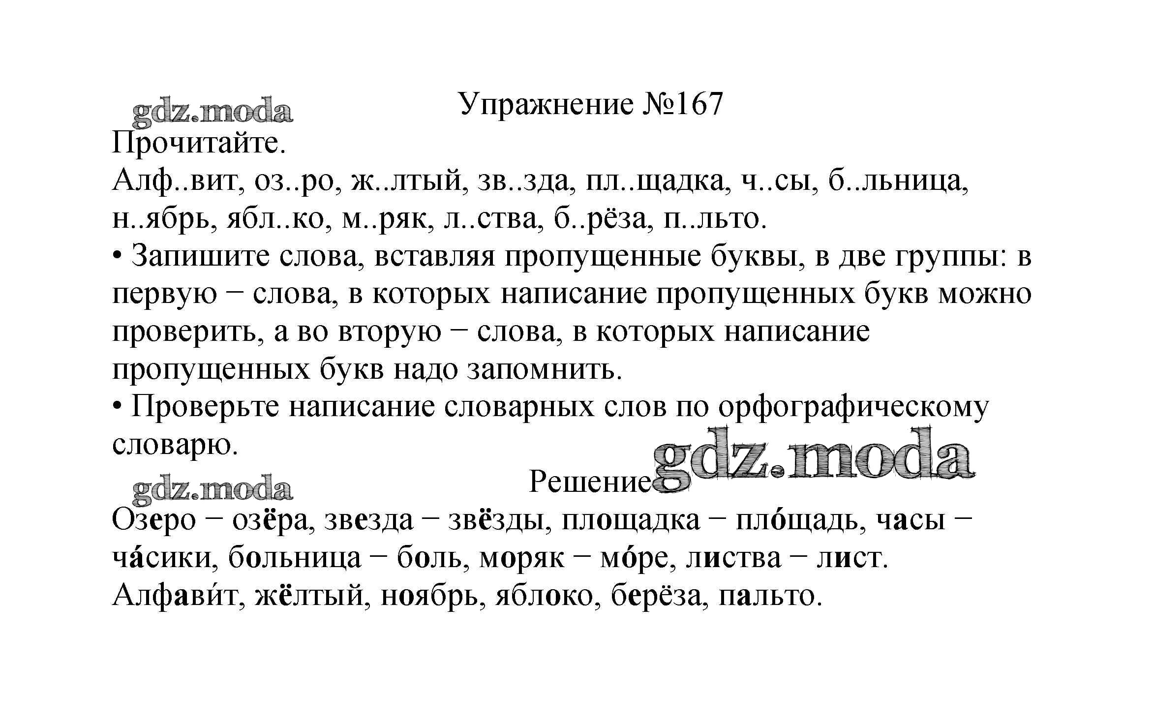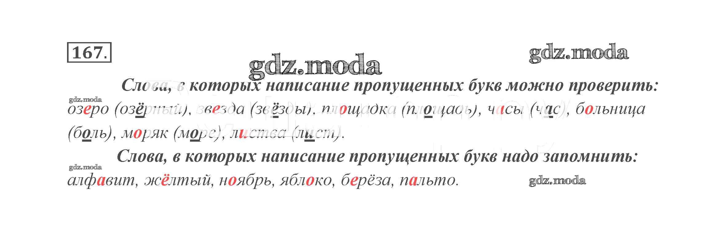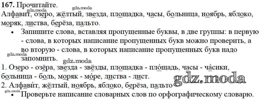 ОТВЕТ на задание № 167 Учебник по Русскому языку 2 класс Канакина Школа России