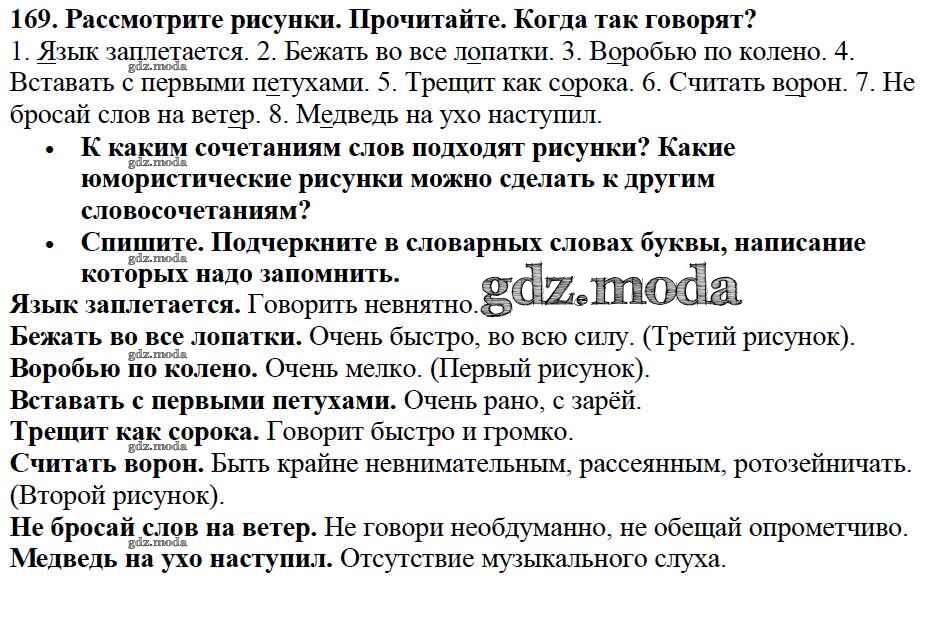ОТВЕТ на задание № 169 Учебник по Русскому языку 2 класс Канакина Школа России