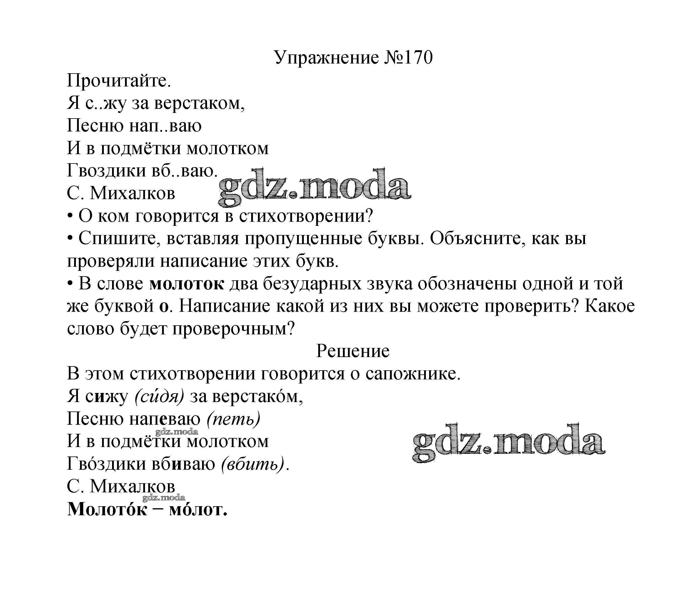 ОТВЕТ на задание № 170 Учебник по Русскому языку 2 класс Канакина Школа России