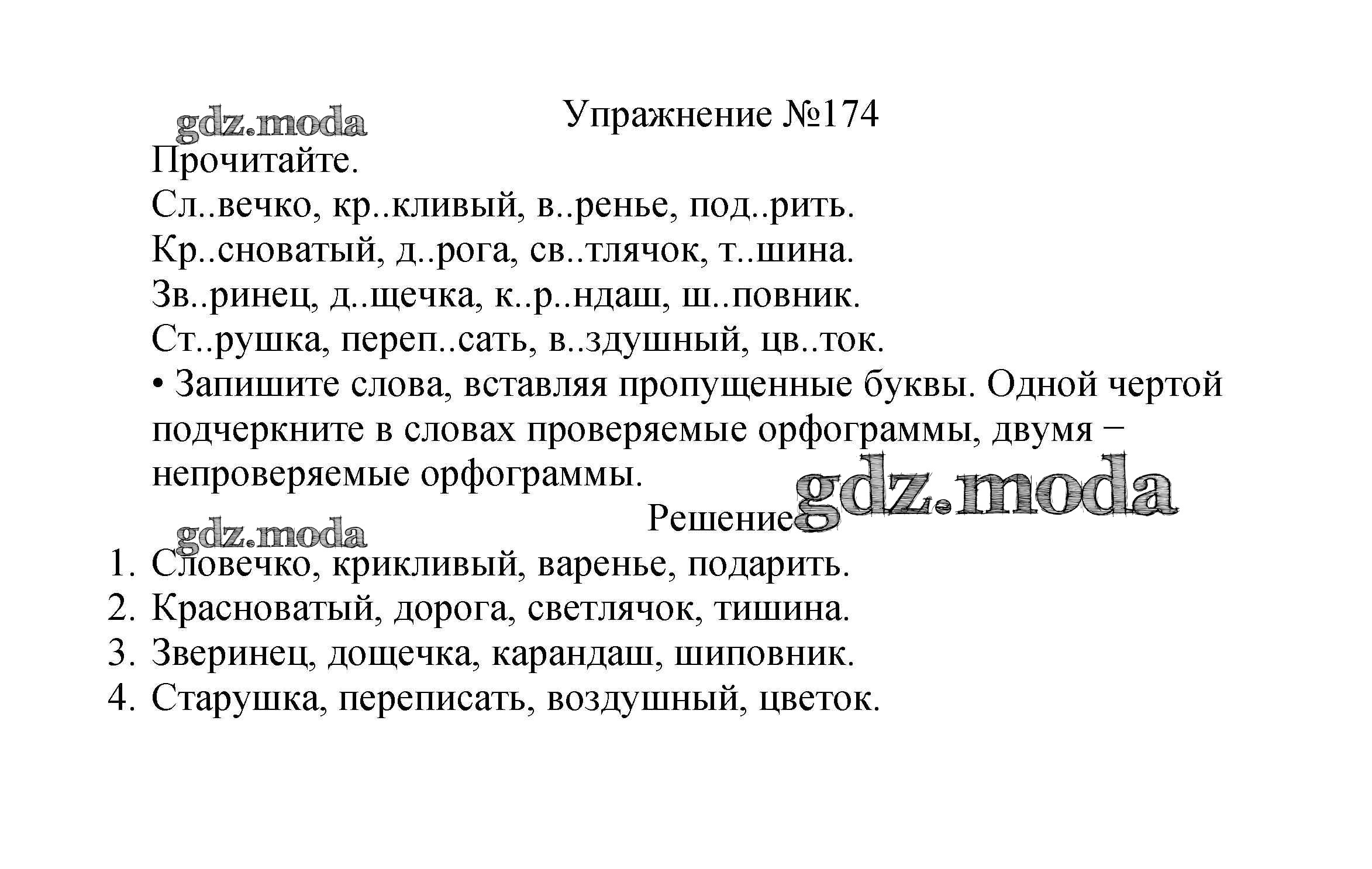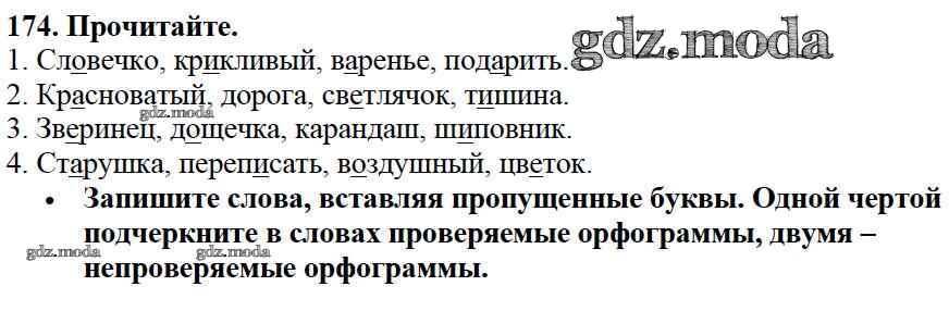 ОТВЕТ на задание № 174 Учебник по Русскому языку 2 класс Канакина Школа России