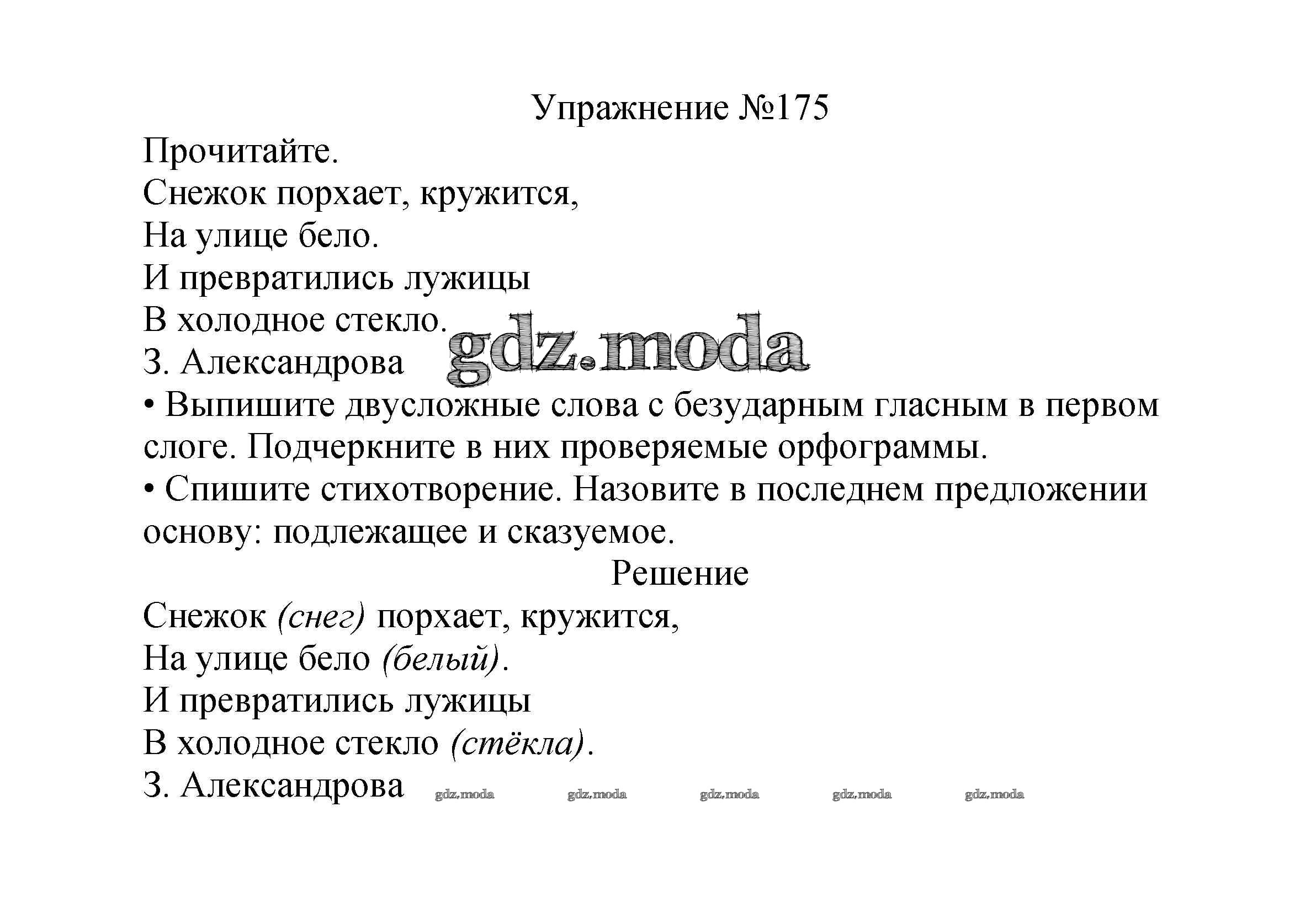 ОТВЕТ на задание № 175 Учебник по Русскому языку 2 класс Канакина Школа России