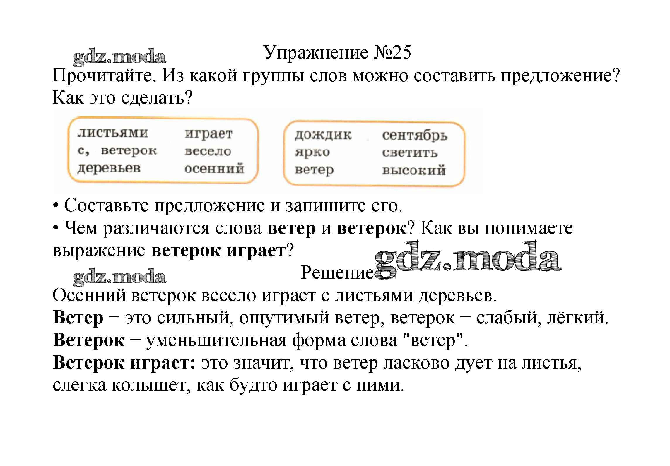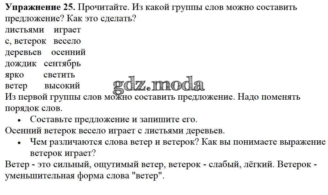 ОТВЕТ на задание № 25 Учебник по Русскому языку 2 класс Канакина Школа России