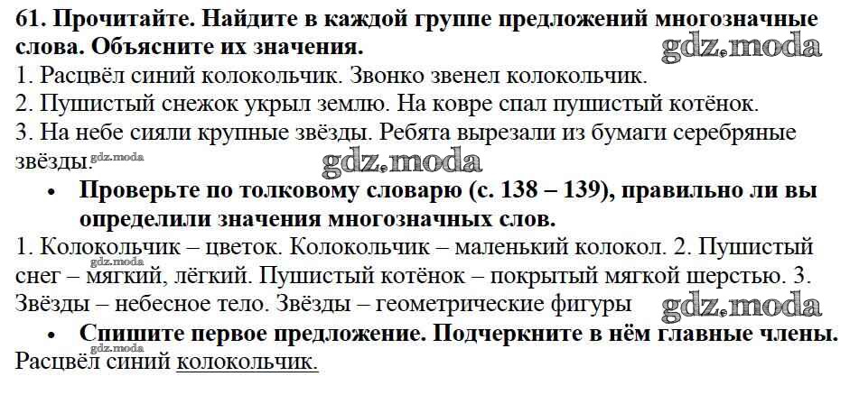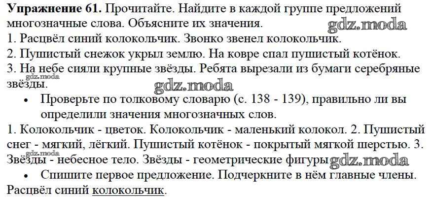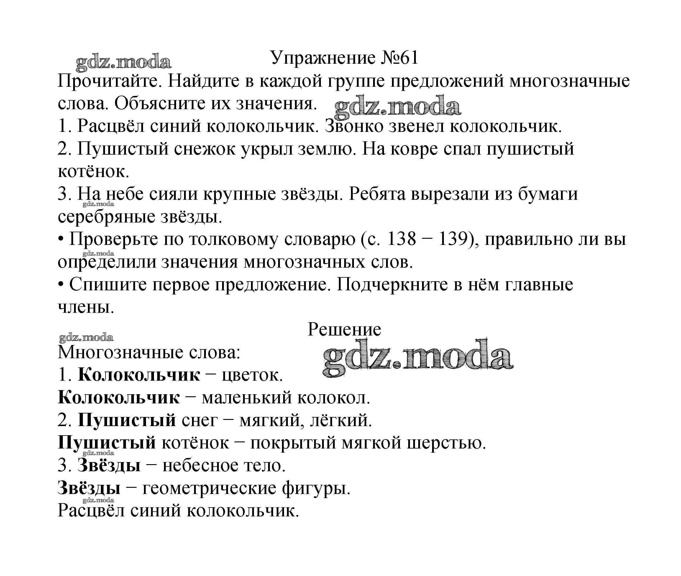 ОТВЕТ на задание № 61 Учебник по Русскому языку 2 класс Канакина Школа России