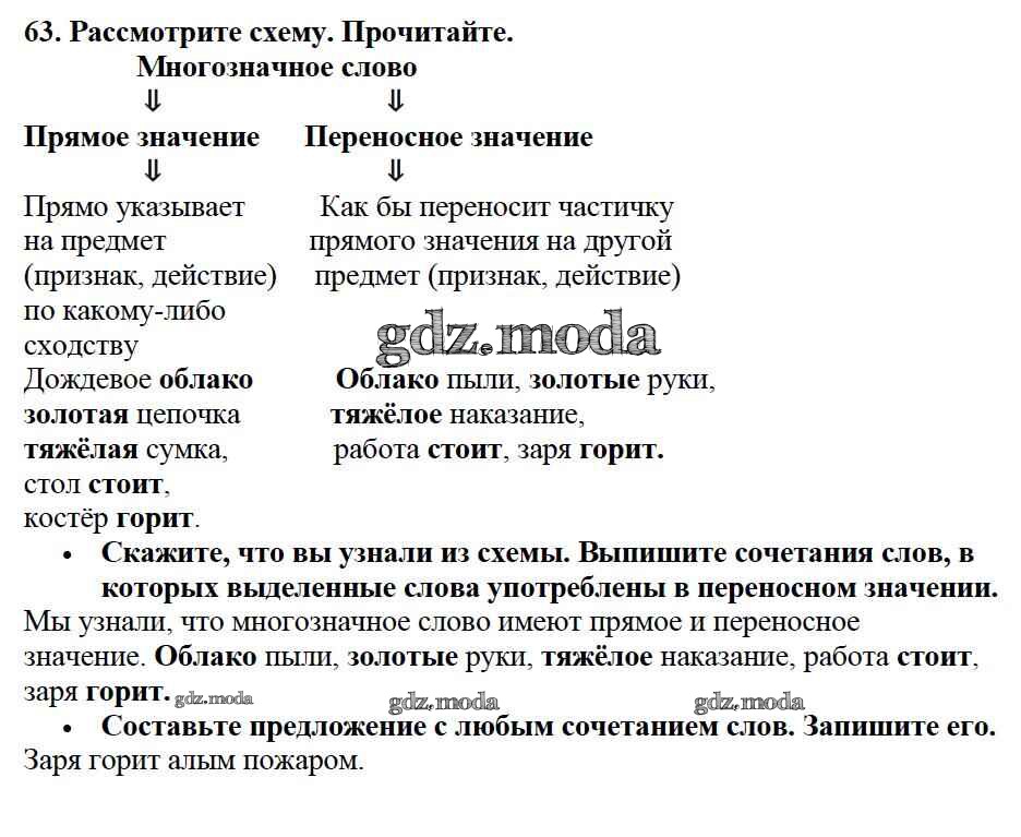 ОТВЕТ на задание № 63 Учебник по Русскому языку 2 класс Канакина Школа России