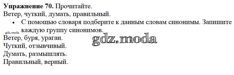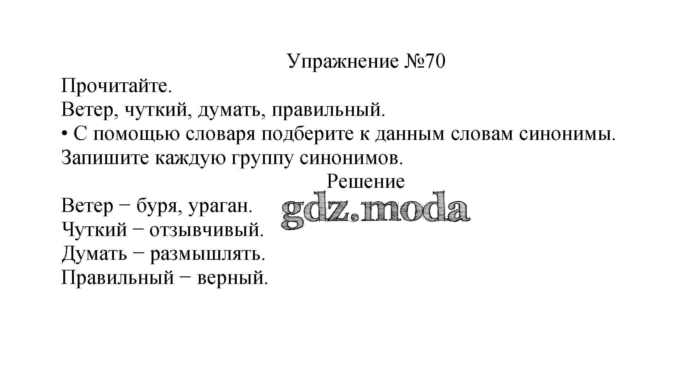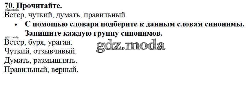 ОТВЕТ на задание № 70 Учебник по Русскому языку 2 класс Канакина Школа России