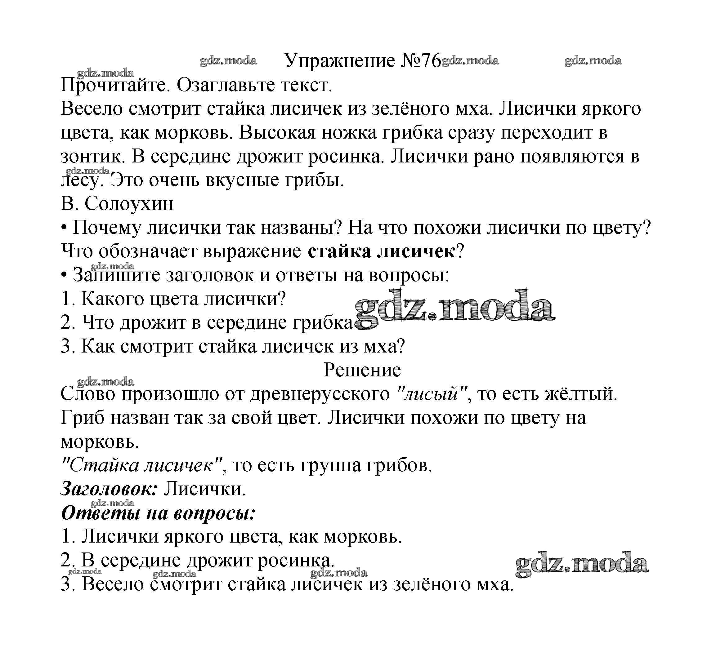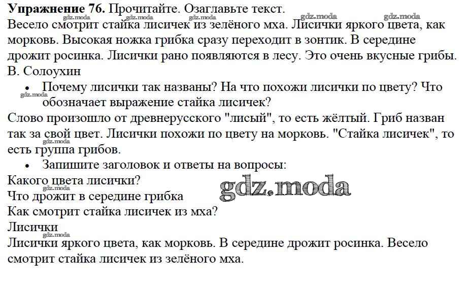 ОТВЕТ на задание № 76 Учебник по Русскому языку 2 класс Канакина Школа России