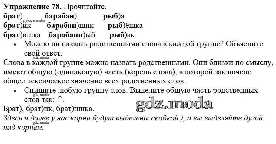 ОТВЕТ на задание № 78 Учебник по Русскому языку 2 класс Канакина Школа России