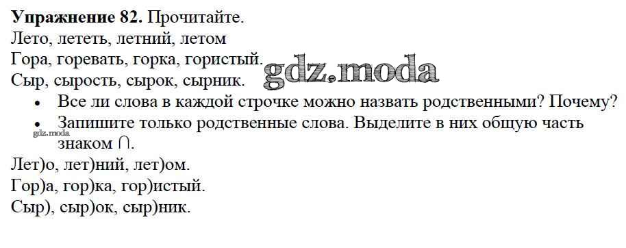 ОТВЕТ на задание № 82 Учебник по Русскому языку 2 класс Канакина Школа России