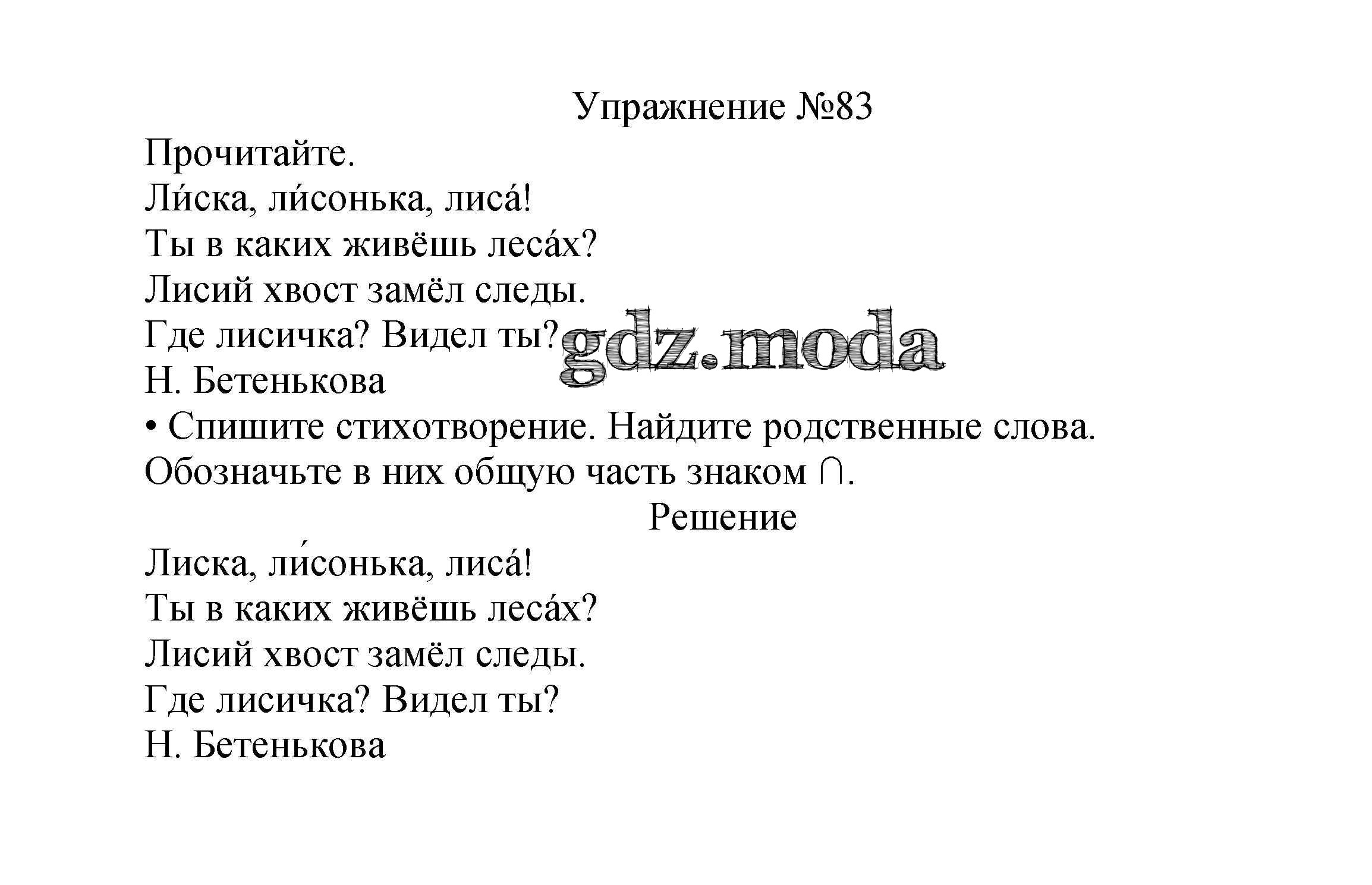 ОТВЕТ на задание № 83 Учебник по Русскому языку 2 класс Канакина Школа России